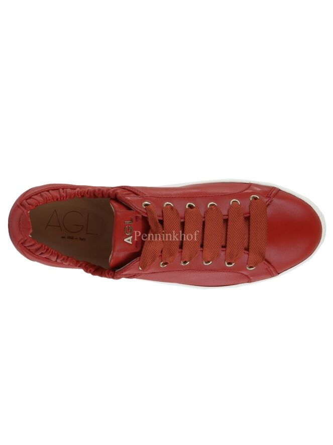 Ein hochwertiger Sneaker der Damenschuhmarke Attilio Giusti Leombruni (AGL) in Korallenrot. Der Sneaker kommt mit farblich identischen Satinschnürsenkeln. Die Schaftkante ist mit einer elastischen gerafften Paspel versehen. Die Einlegesohle ist herausnehmbar. Der Sneaker hat ein Futter aus Leder.