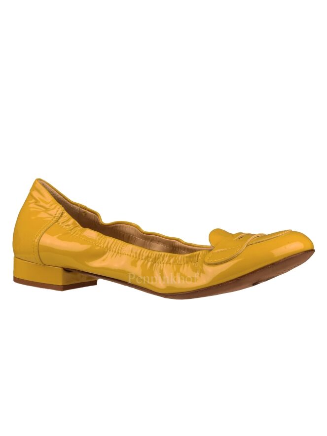 MODEL: B445\r\nKLEUR: DONKER GEEL\r\nDETAILS: INSTAPPER\r\nMATERIAAL: LAKLEDER