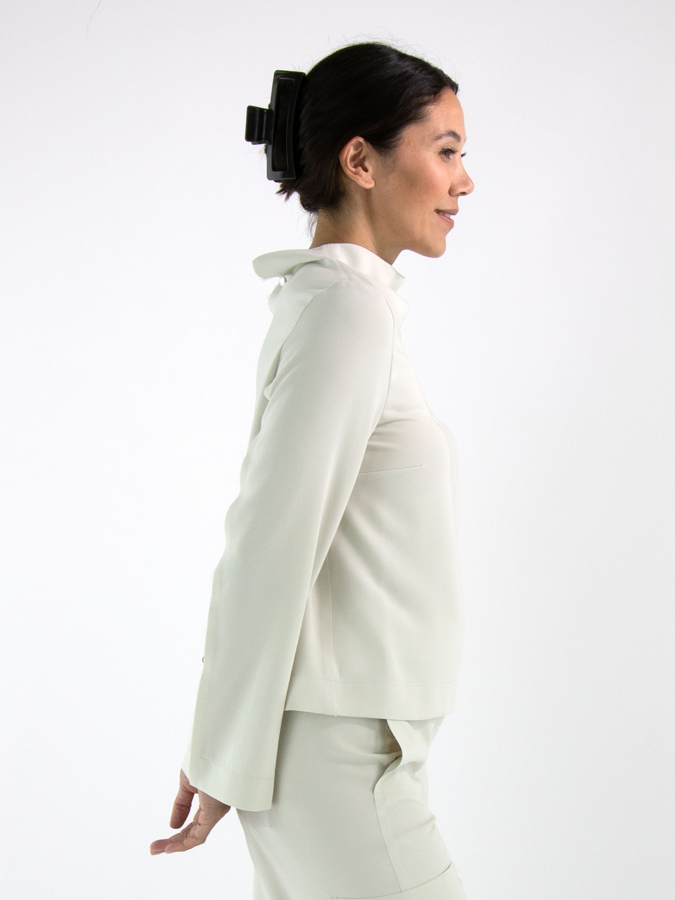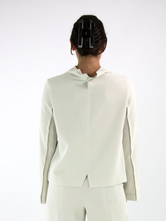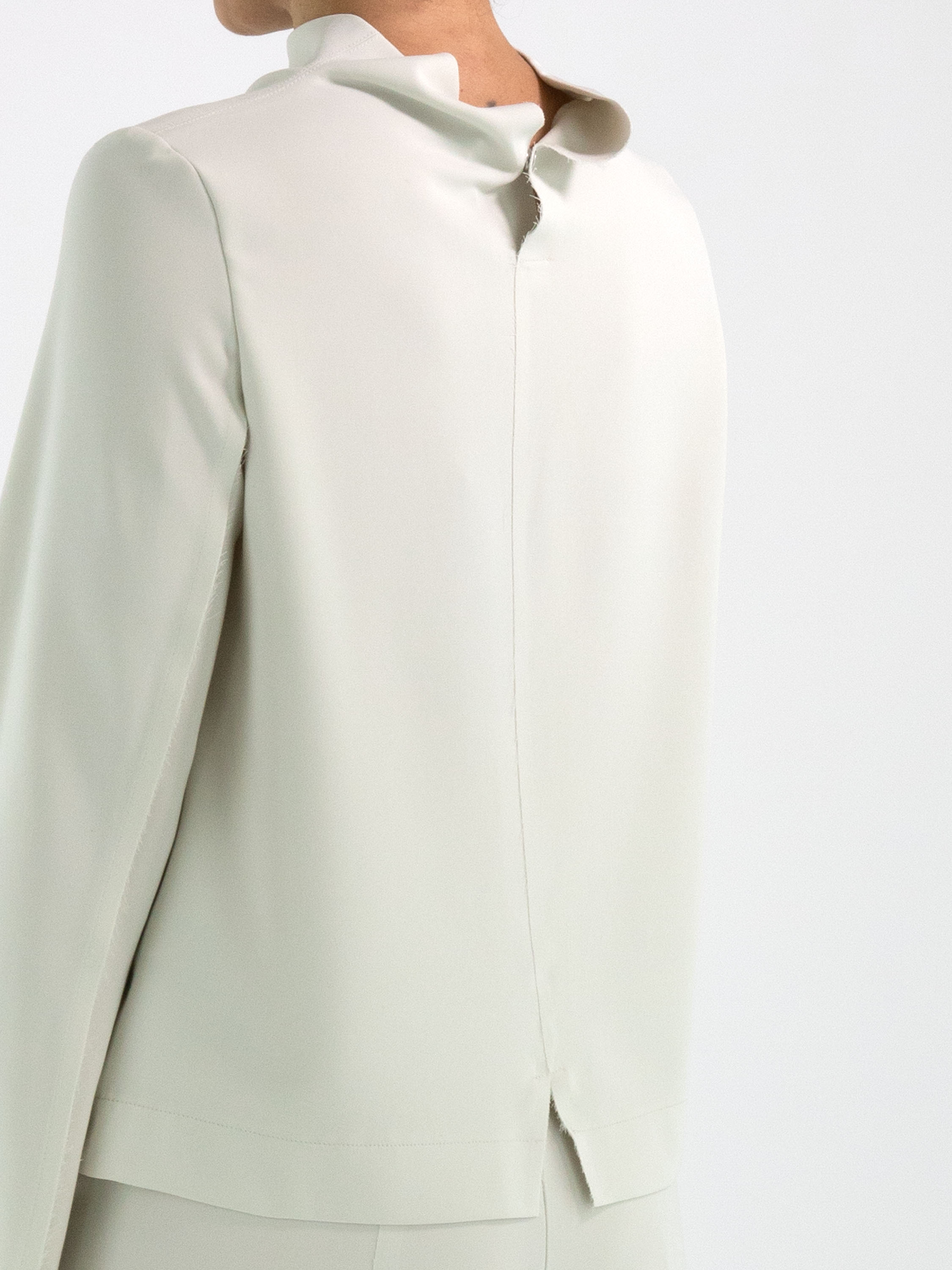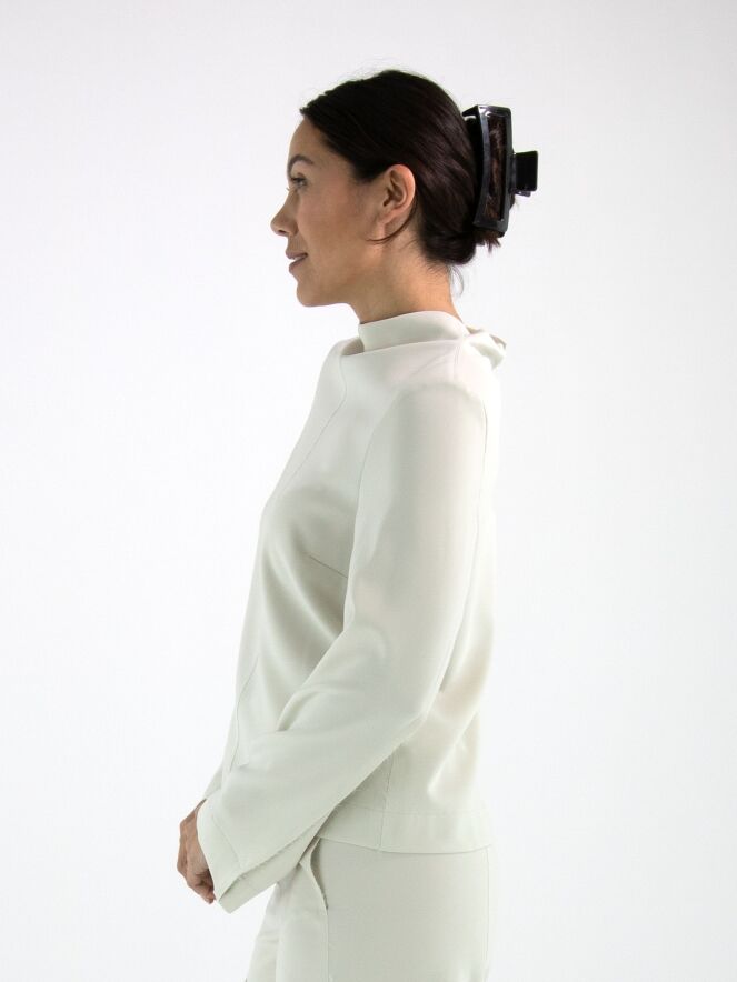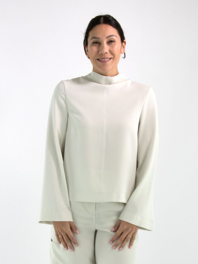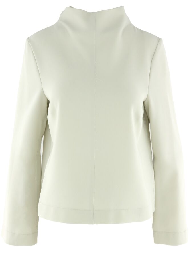 Ein Shirt von Annette Görtz in der Farbe Kit. Vom Mittelpunkt des Turtle-Ausschnitts verläuft sowohl vorne als auch hinten eine dekorative, umgekehrte Naht nach unten, die dem Modell ein modernes und raffiniertes Detail verleiht. Die Ränder dieser Nähte sind dezent ausgefranst, was dem Shirt eine lässige Note gibt. Dieses exklusive Shirt kann per Hand gewaschen werden.