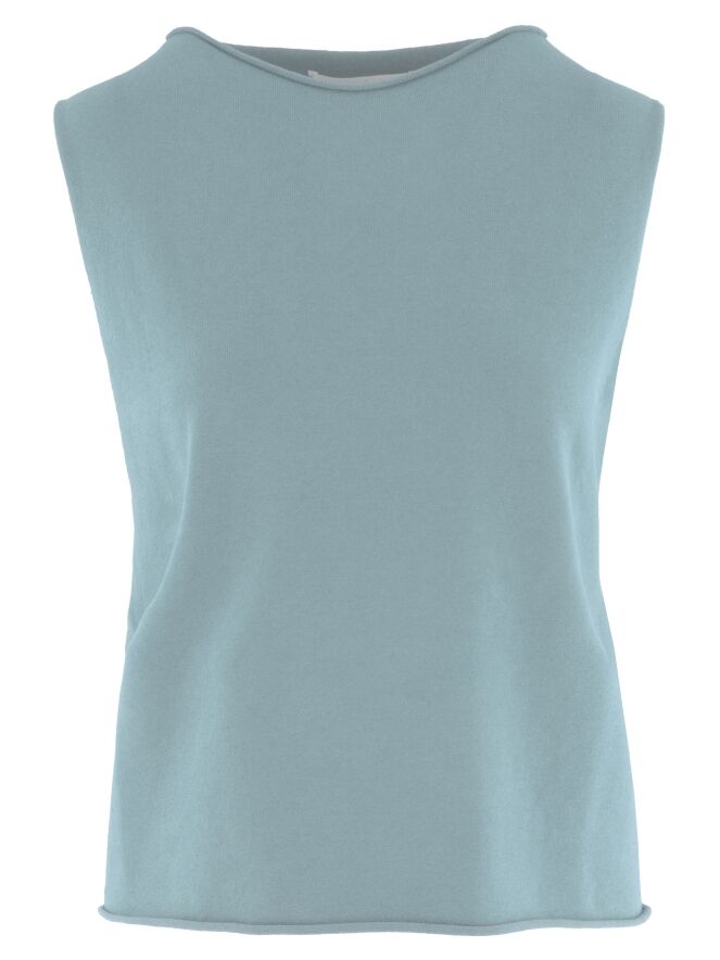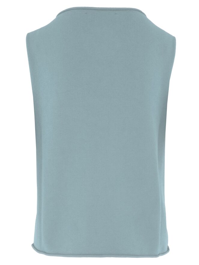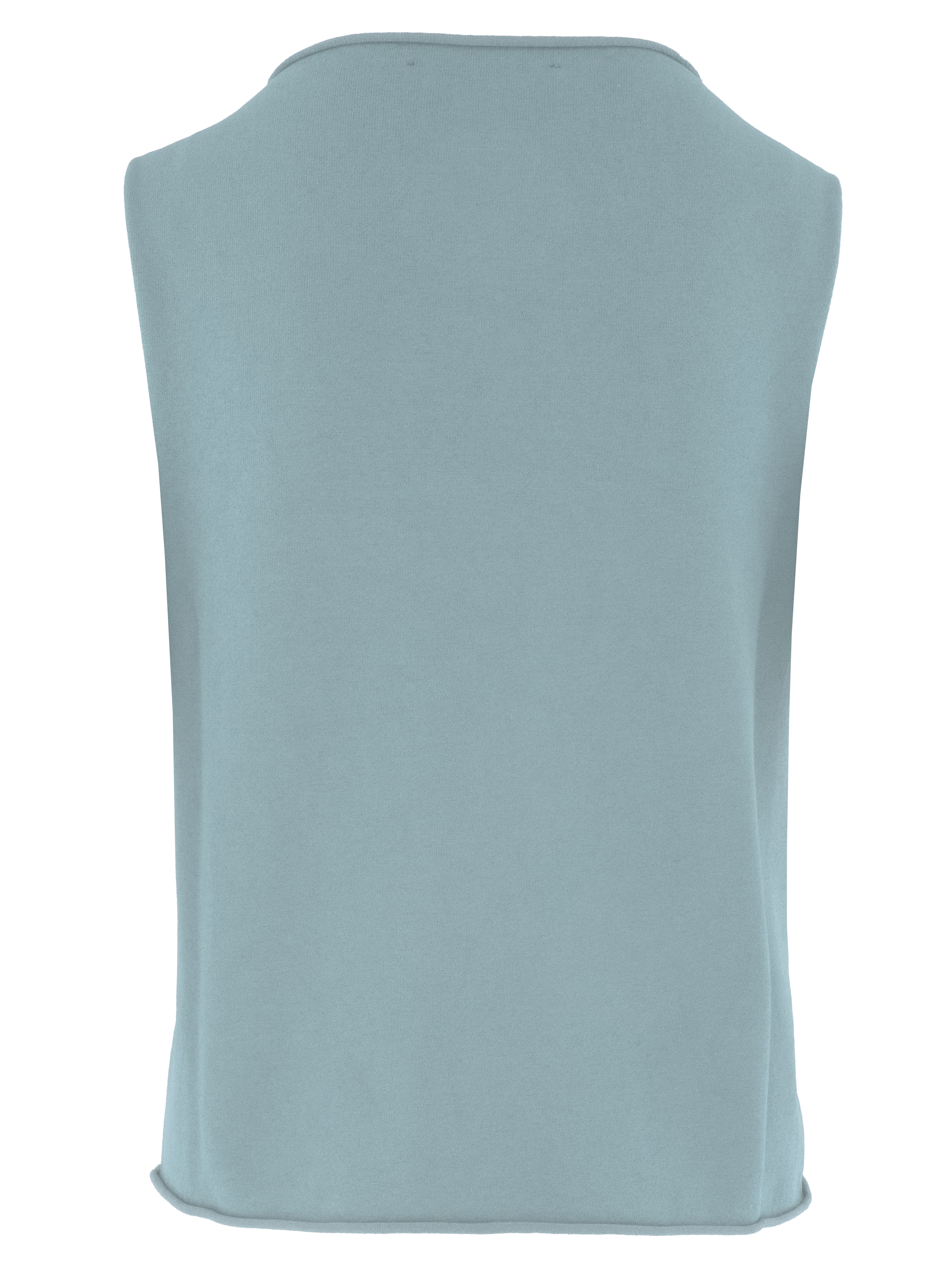 Ein Top von Annette Görtz in Petrolblau. Die Kanten des Rundhalsausschnitts, der Ärmeleinsätze und des Saums sind gerüscht gearbeitet. Dieser Top kann bei 30 Grad gewaschen werden.
