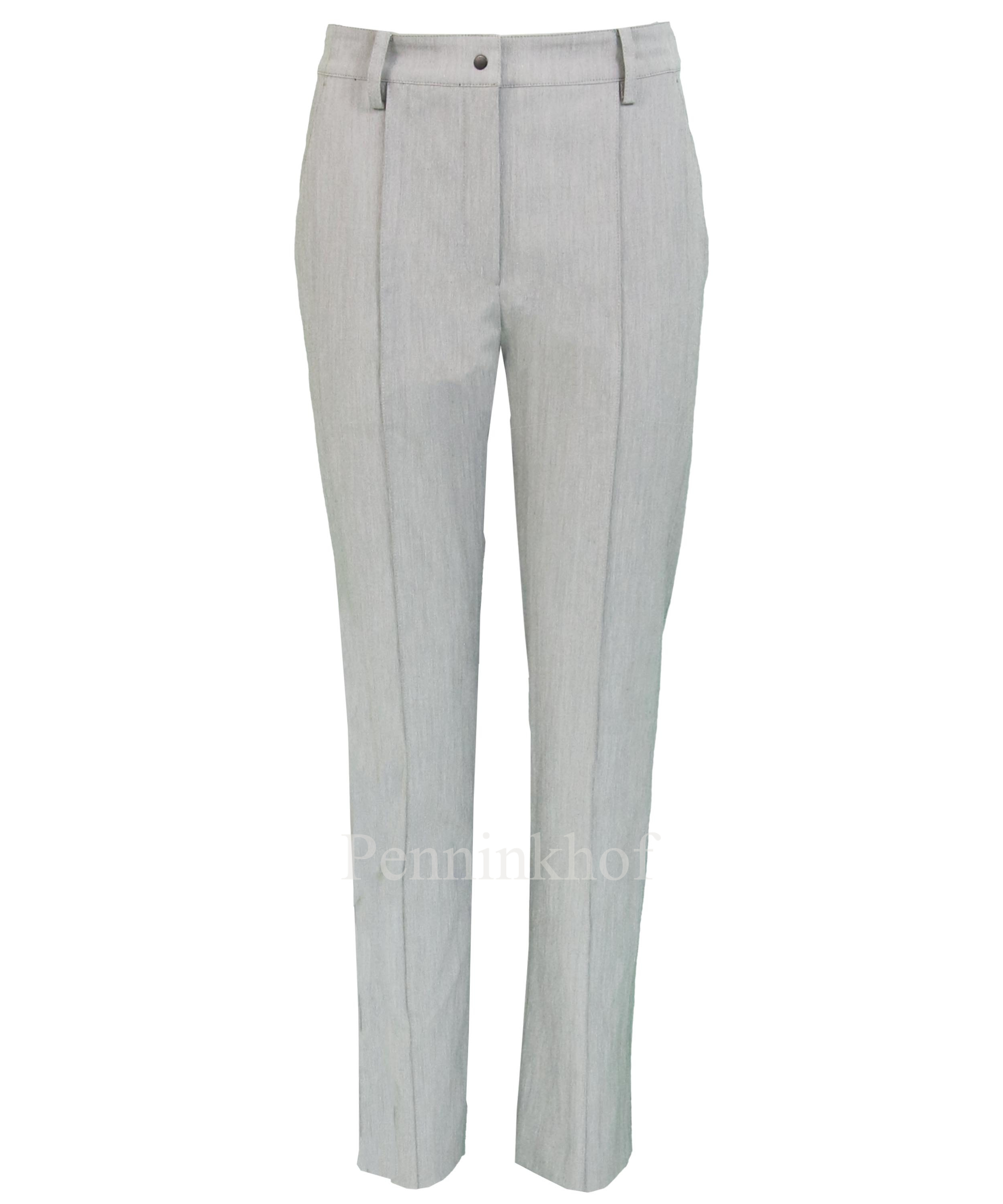 Eine graue Stoffhose der Designermode von Annette Görtz. Die Hose besteht aus einem Gewebe mit Krepprelief-Struktur. Eine mittige Steppnaht akzentuiert die Hosenbeine. Die Hose kommt mit Eingriffstaschen und kann bei 30 Grad gewaschen werden.