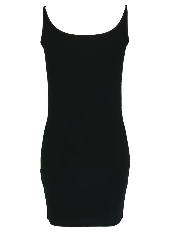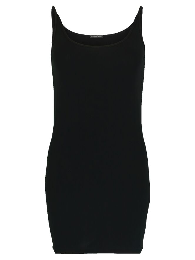 Langes, schwarzes Top der Designermode von Annette Görtz. Das Spaghettiträger-Top hat einen Rundhalsausschnitt und kann bei 30 Grad in der Waschmaschine gewaschen werden.