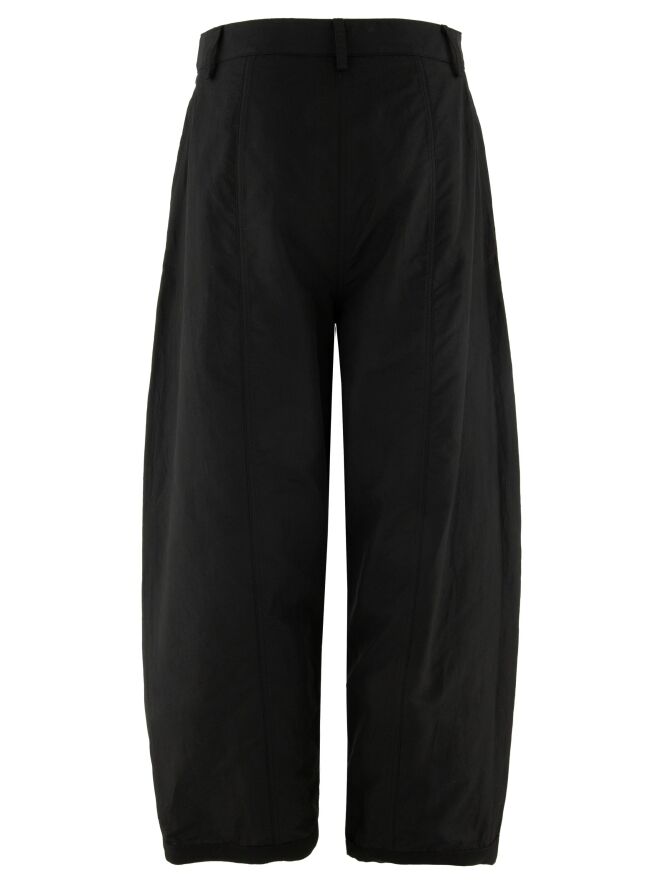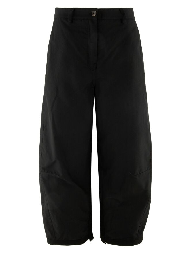 Eine Hose von Annette Görtz in Schwarz. Die Hose hat Seitentaschen. Im Saum der Hosenbeine ist ein formbarer Draht eingearbeitet, mit dem die Beinform individuell gestaltet werden kann. Diese Hose kann bei 30 Grad gewaschen werden.