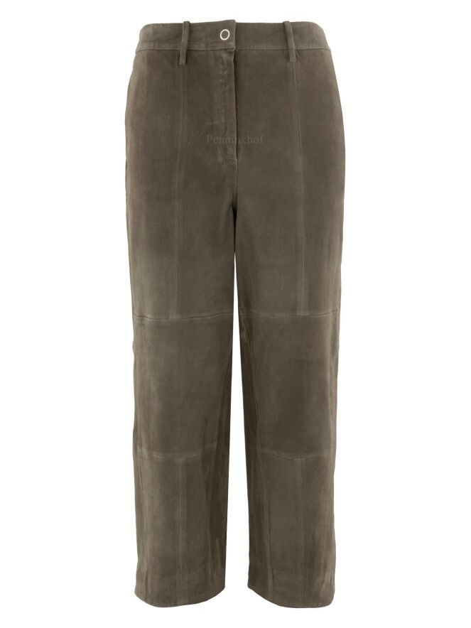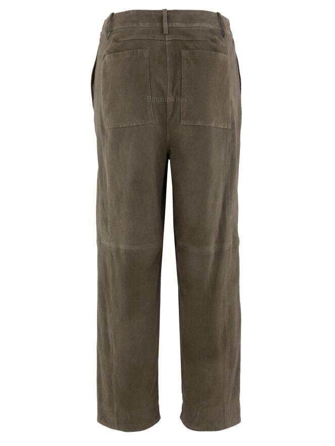 Gerade geschnittene Lederhose von Annette Görtz in der Farbe Taupe. Die Hose hat Seitentaschen. Diese Hose sollte nicht gewaschen werden.