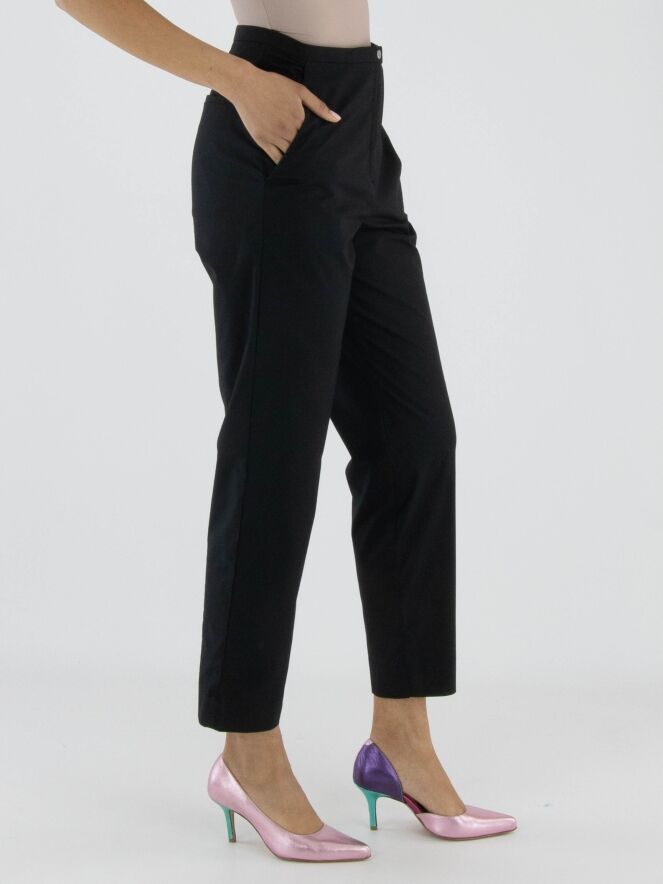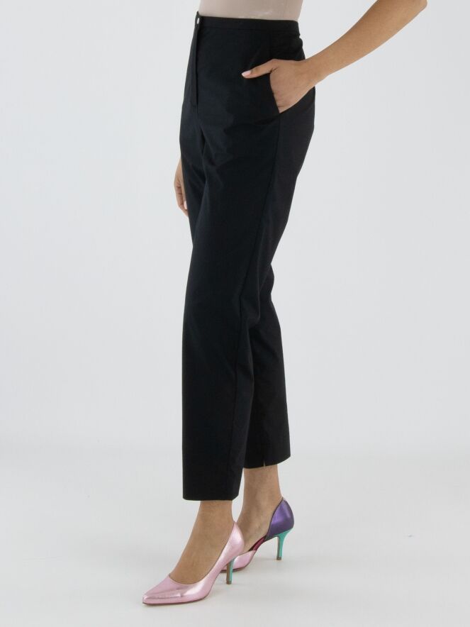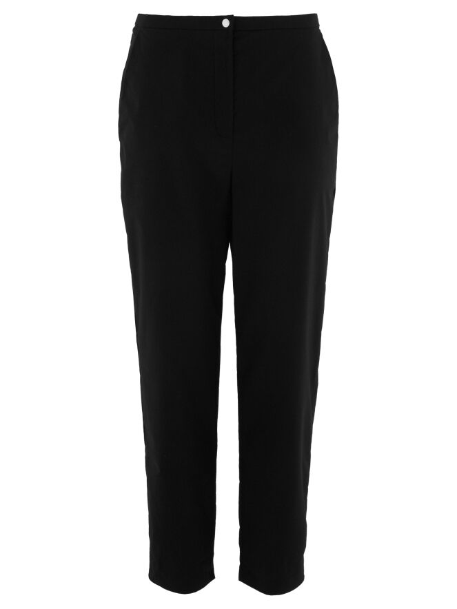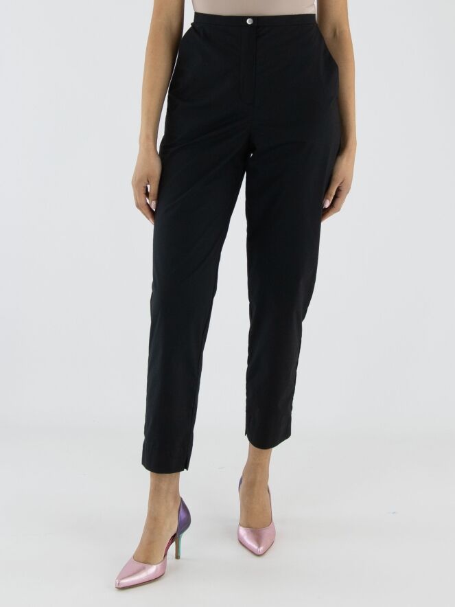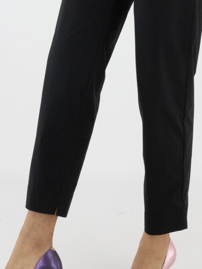 Eine Hose von Annette Görtz in Schwarz. Die Hose hat Eingrifftaschen und einen kleinen Schlitz am unteren Ende der Hosenbeine. Diese Hose kann bei 30 Grad gewaschen werden.