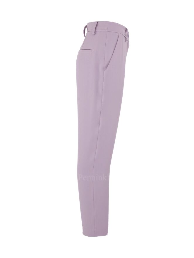 Eine Stoffhose der Designermode von Annette Görtz in Violett. Die Hose kommt mit Eingriffstaschen und kann bei 30 Grad in der Waschmaschine gewaschen werden.