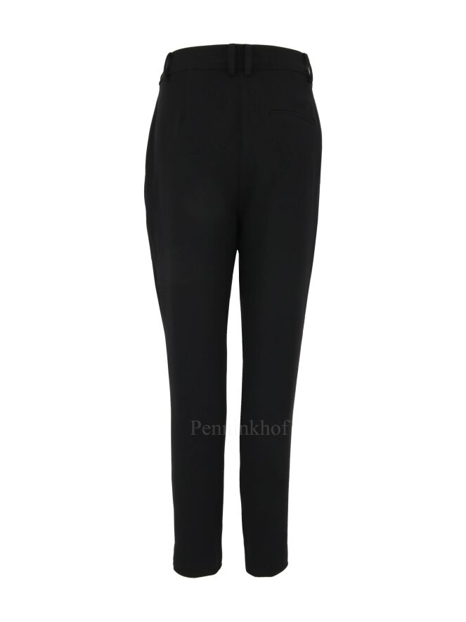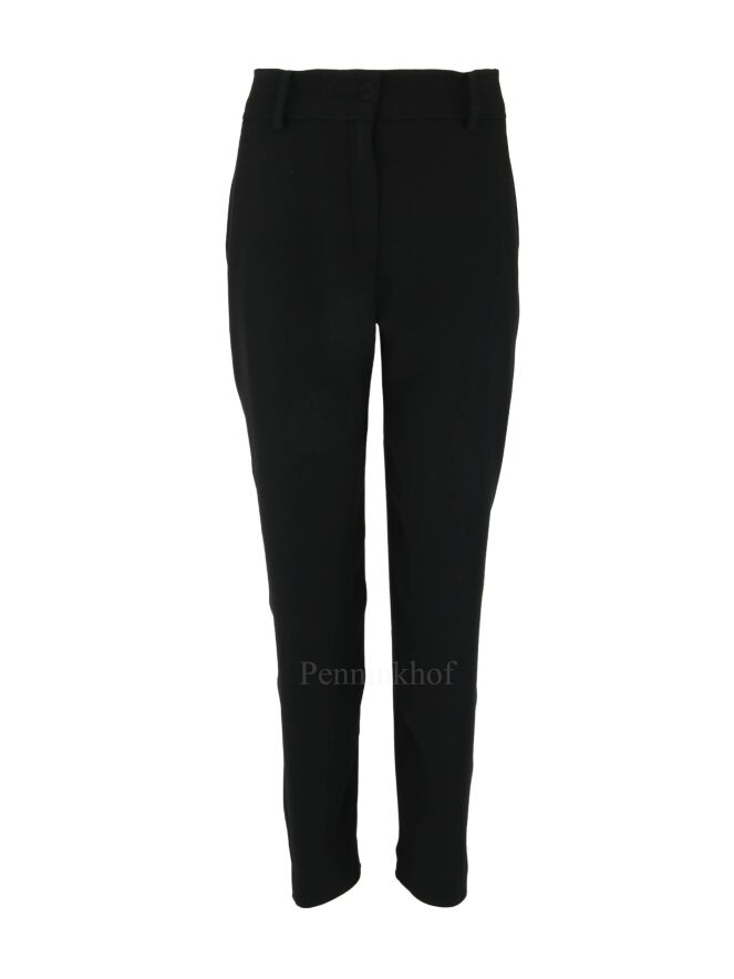 Eine schwarze Stoffhose der Designermode von Annette Görtz. Die Hose kommt mit Eingriffstaschen und kann bei 30 Grad in der Waschmaschine gewaschen werden.