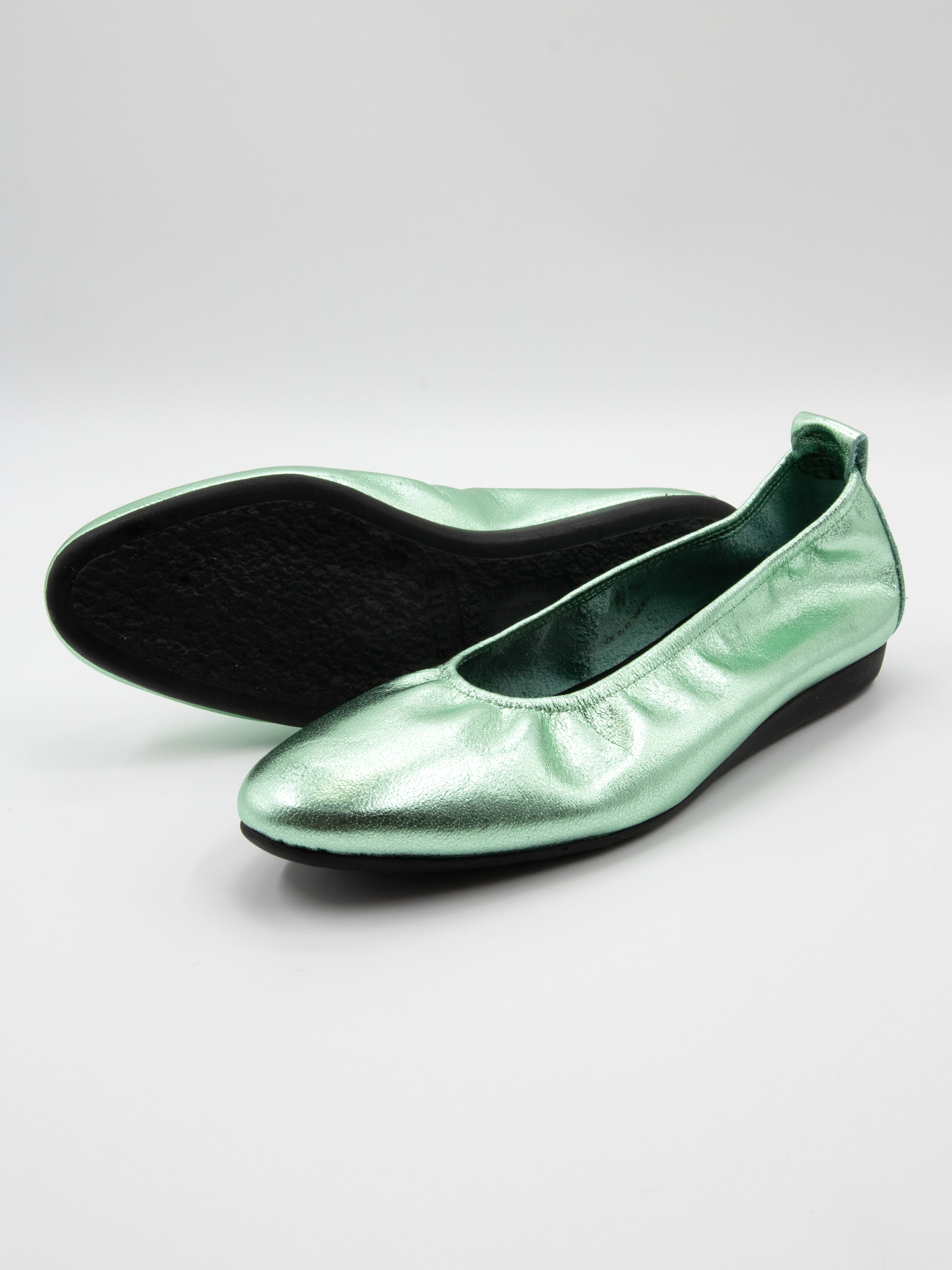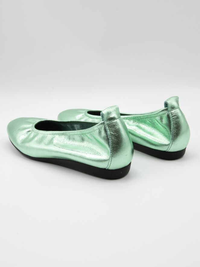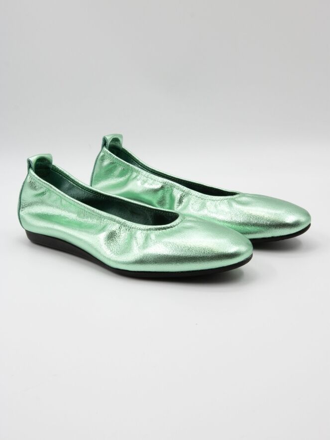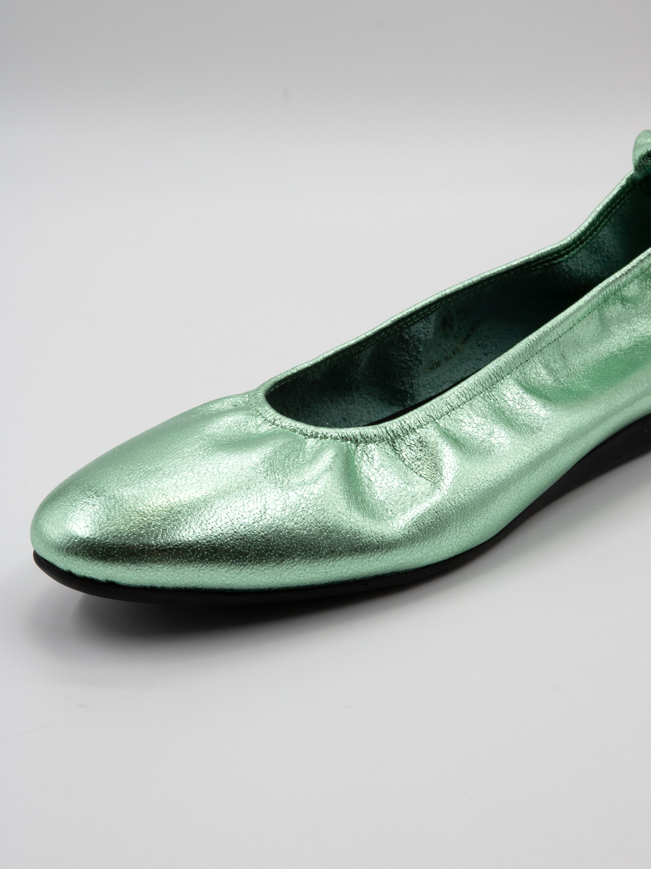 Das Modell Laius ist ein ikonisches Basismodell von Arche in einem frischen Metallic-Apfelgrün. Gefertigt aus hochwertigem Kalbsleder und ausgestattet mit einer flexiblen Latexsohle, bietet es hervorragenden Tragekomfort. Die elegant rund geschnittene Spitze verleiht dem Design eine zeitlose, stilvolle Ausstrahlung. Die ungefütterte Innenseite sorgt für zusätzliche Geschmeidigkeit und eine natürliche Passform. Der leicht erhöhte hintere Sohlenbereich trägt zu noch mehr Komfort bei jedem Schritt bei.