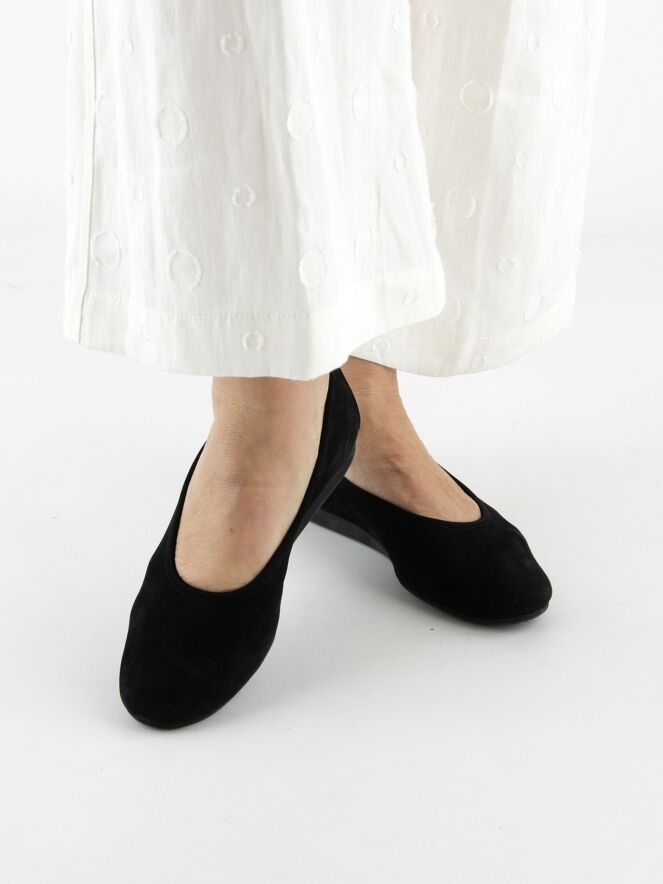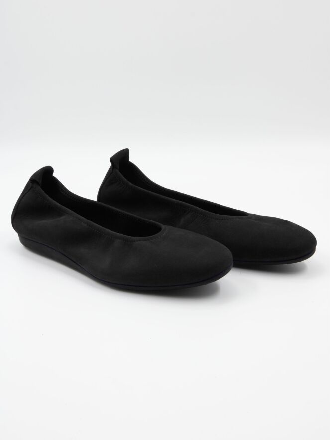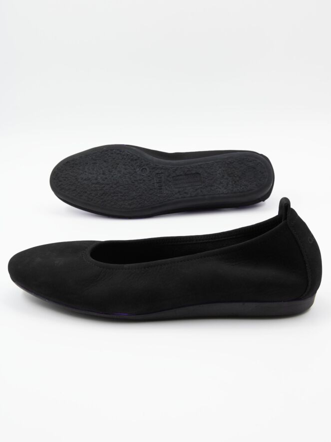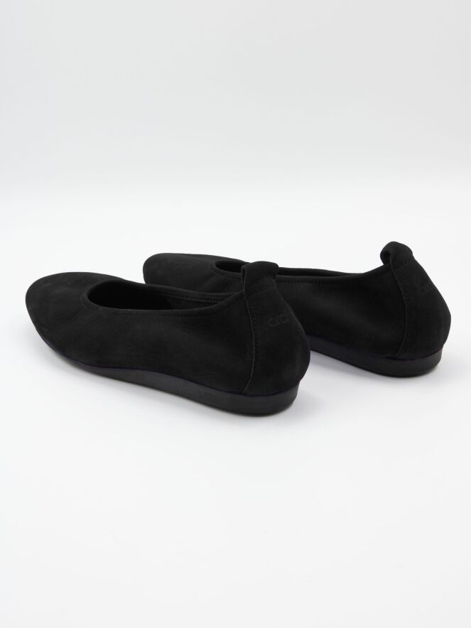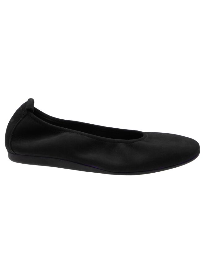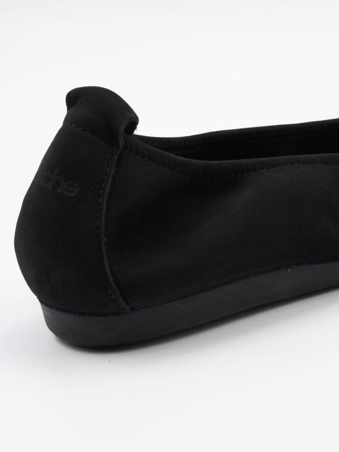 Das Modell Laius in Schwarz. Ein klassisches Modell der Marke Arche. Diese Ballerina besteht aus hochwertigem Kalbsleder und verfügt über eine flexible Latexssohle. Das Modell ist einfarbig gehalten, mit einer elegant abgerundeten Zehenpartie. Das Innere ist ungefüttert, um zusätzliche Flexibilität zu bieten. Der hintere Teil der Sohle ist leicht erhöht, was für mehr Komfort sorgt.