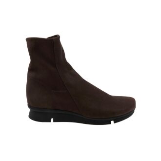 Eine Stiefelette von Arche in der Farbe khaki. Der Stiefel hat eine leicht erhöhte sportliche Latexsohle in der Farbe schwarz. An der Innenseite befindet sich ein schwarzer Reißverschluss. Der Stiefel hat eine runde Nase und die Innenseite ist ungefüttert.