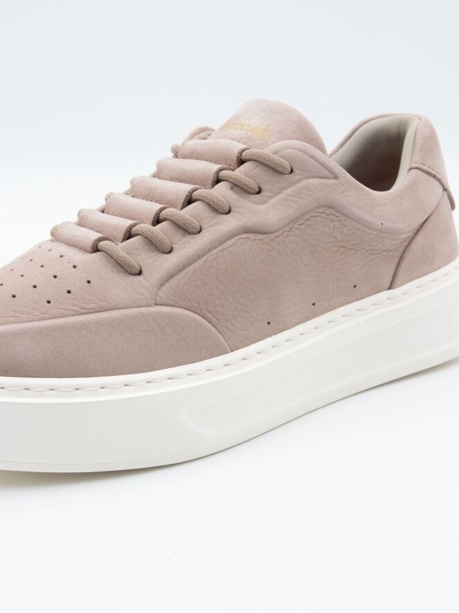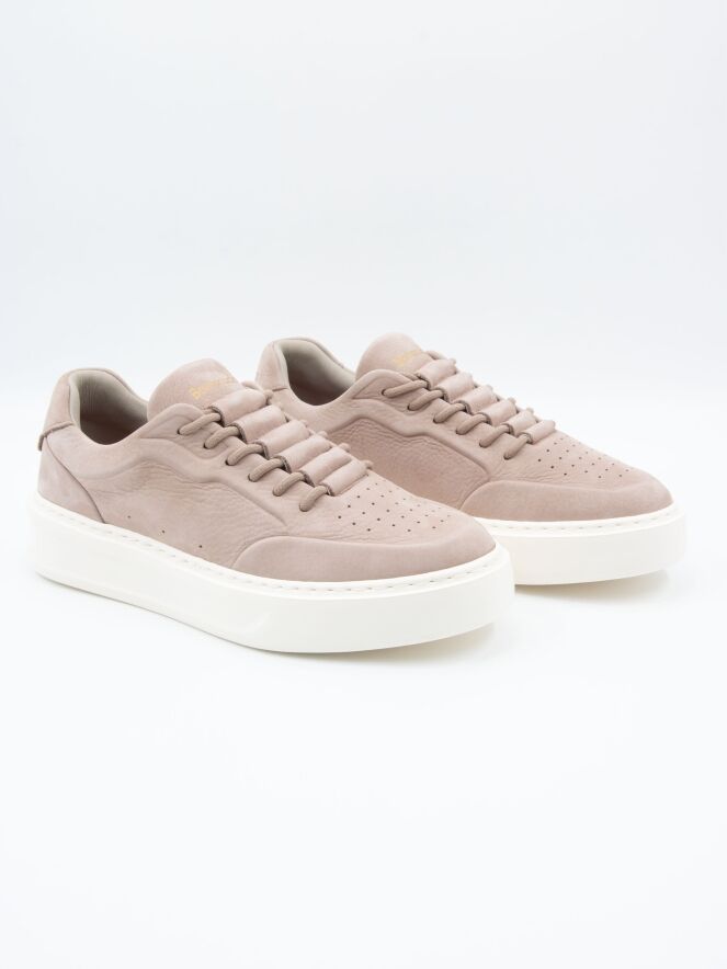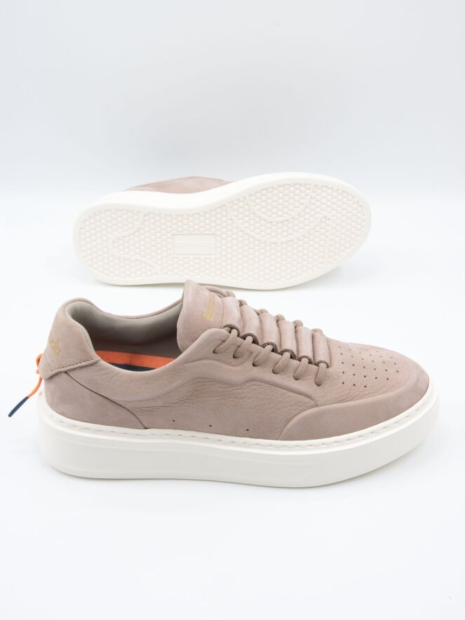 Ein niedriger Sneaker von Barracuda in grauer Farbe. Der Vorfuß ist fein perforiert, und die Sohle ist cremefarben. Das Innere ist mit Leder gefüttert.