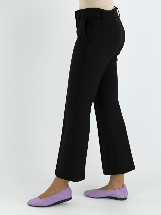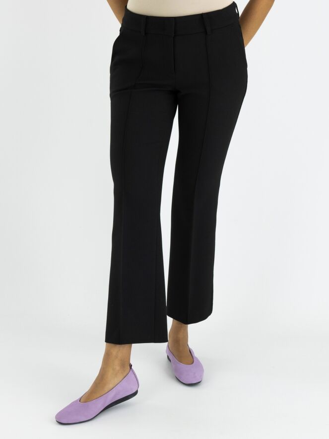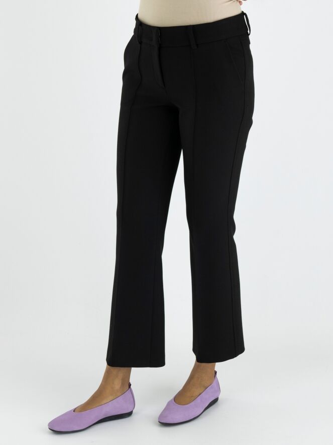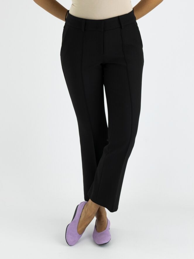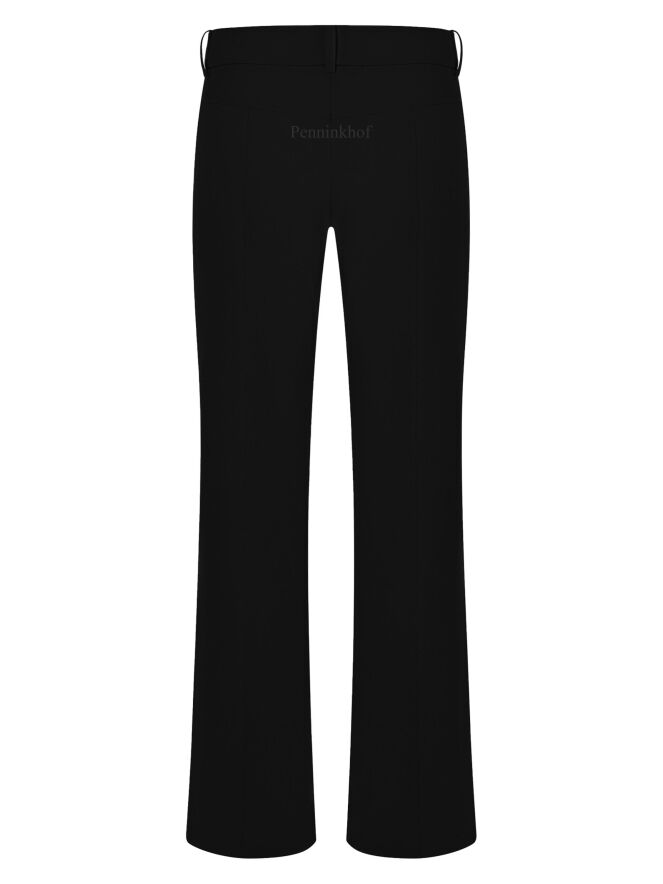 Eine Hose von Cambio in Schwarz. An den Seiten befindet sich eine dekorative Naht. Auch in der Mitte der Beine verläuft eine Naht. Die Hose hat Seitentaschen und kann bei 30 Grad gewaschen werden.