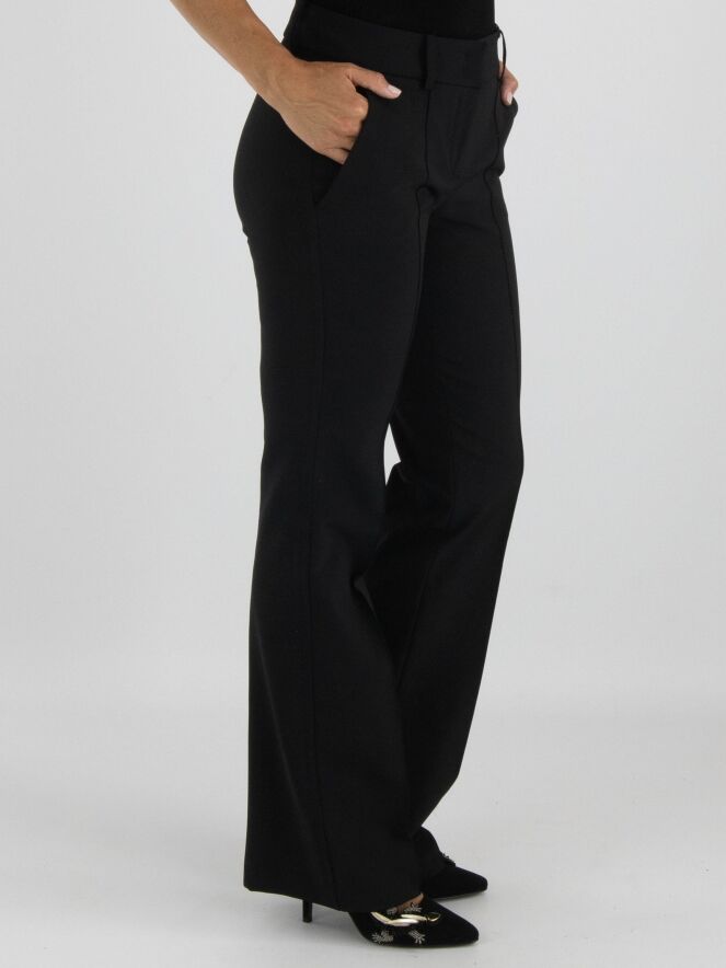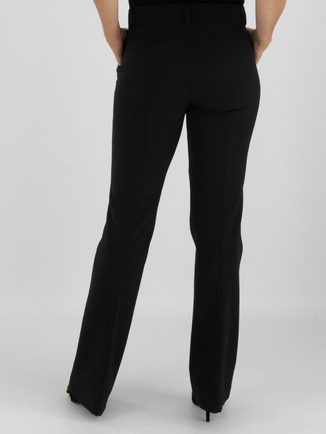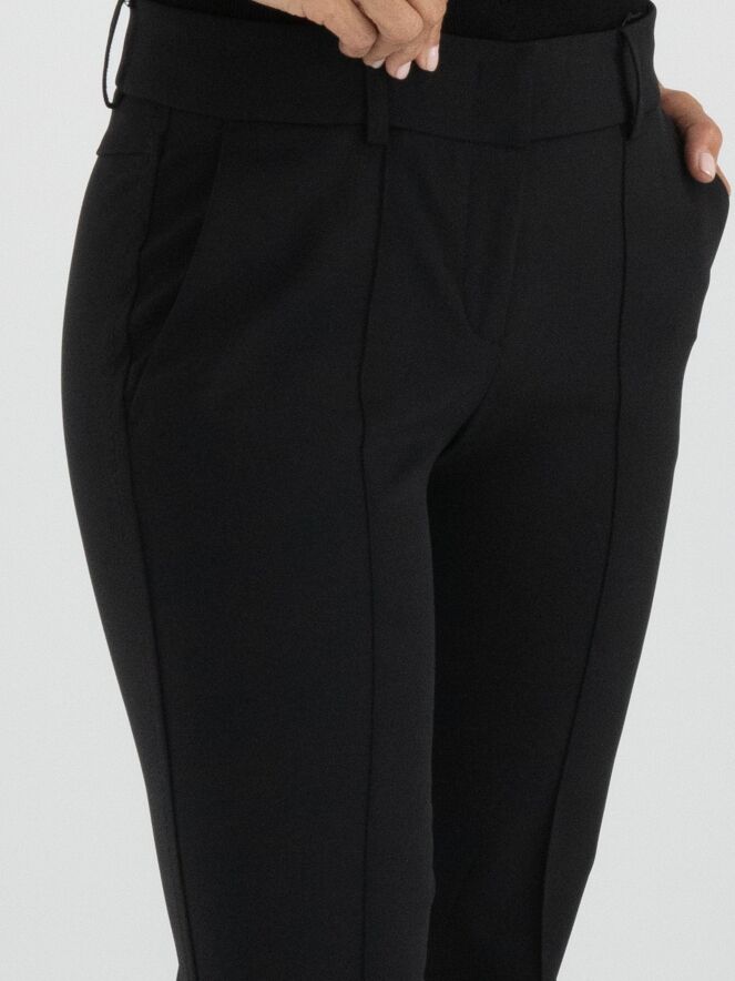 Hose von Cambio in schwarz. An den Seiten ist eine Paspel mit einer dekorativen Steppnaht. In der Mitte der Beine befindet sich eine abgesteppte Naht und die Hose hat Seitentaschen. Diese Hose kann bei 30 Grad gewaschen werden.