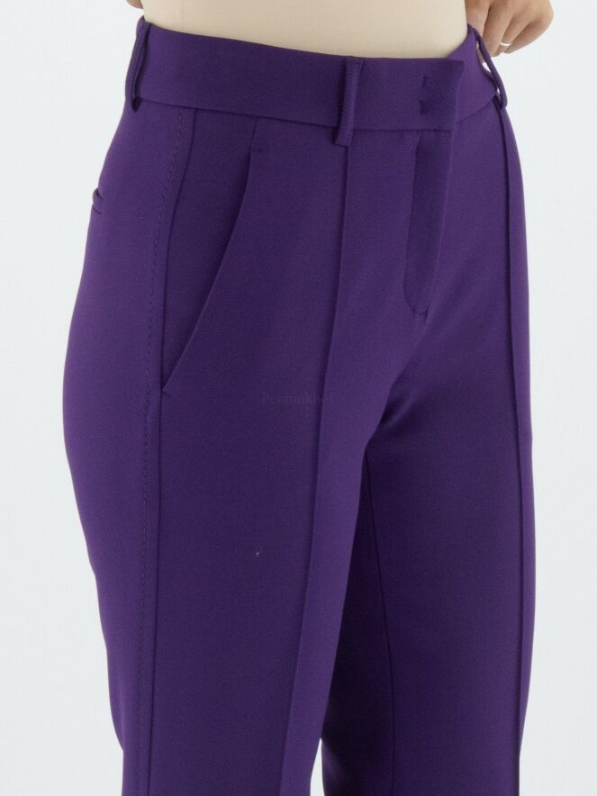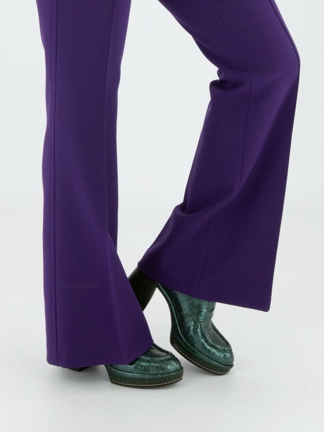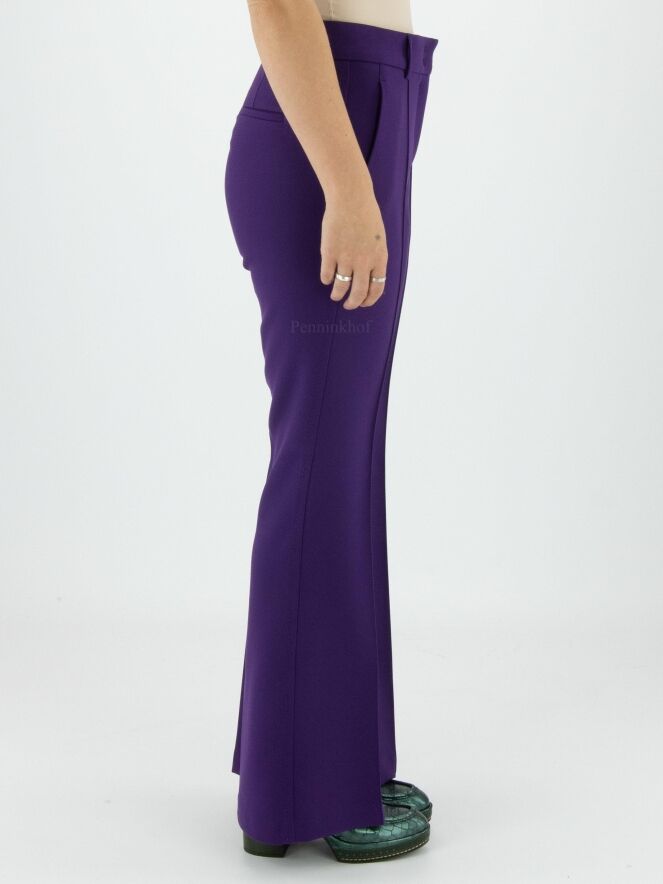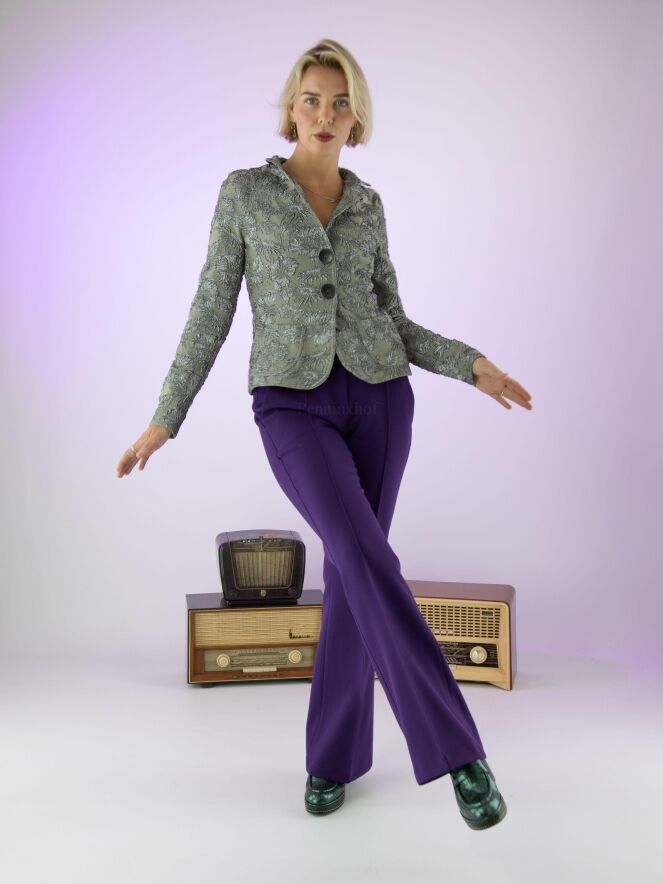 Schlaghose von Cambio in der Farbe lila. Die Hose hat Seitentaschen und eine abgesteppte Naht in der Mitte der Beine. An den Seiten befindet sich eine dekorative "ton sur ton"-Naht. Diese Hose kann bei 30 Grad gewaschen werden.