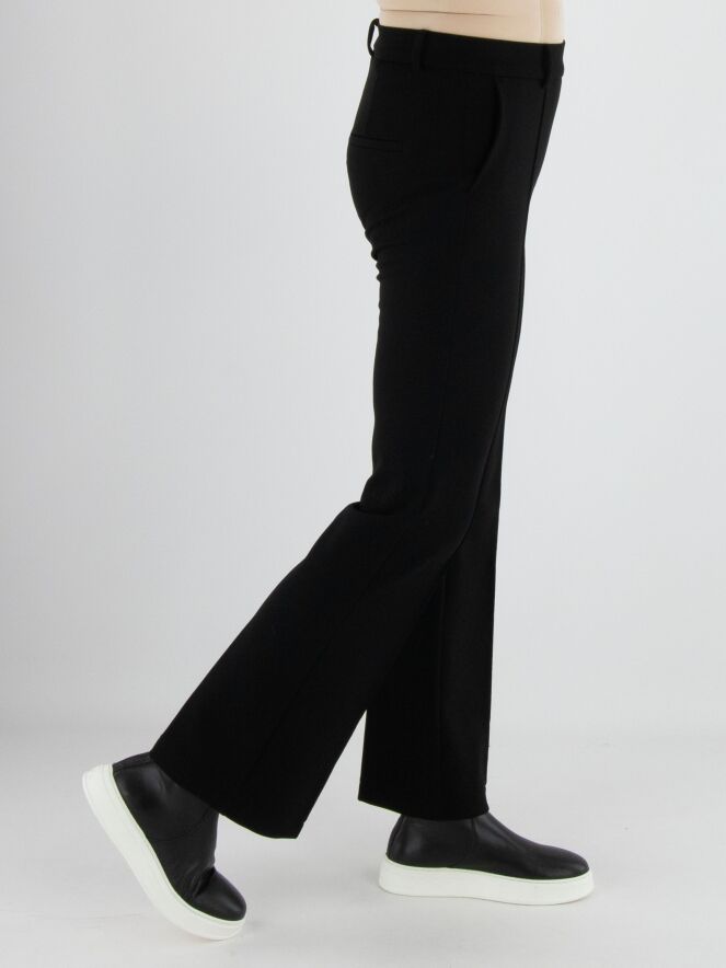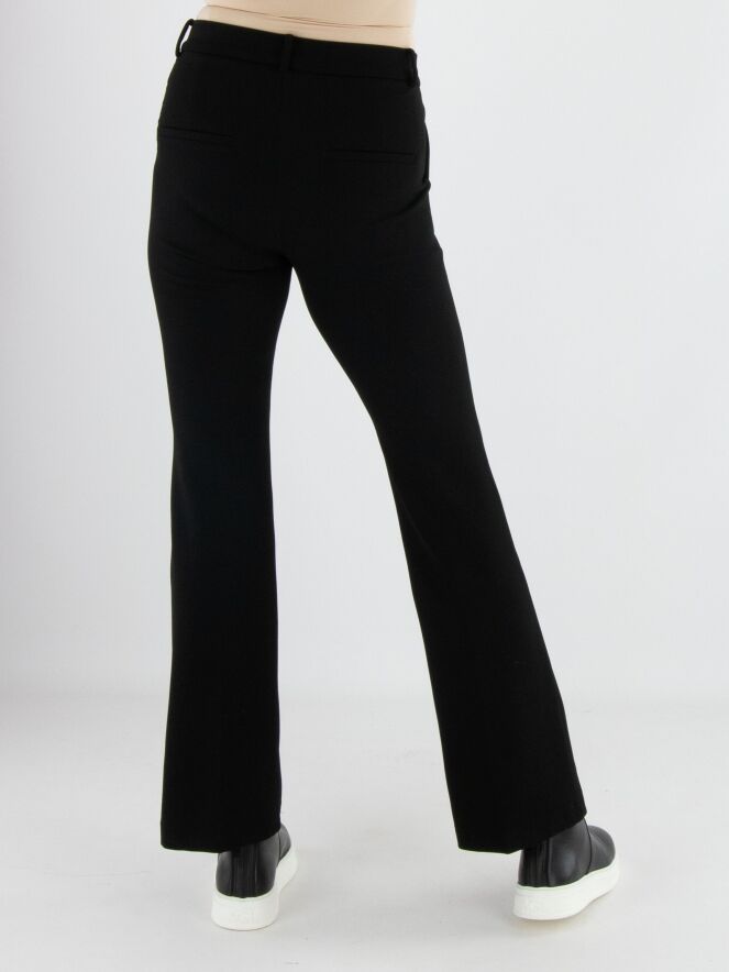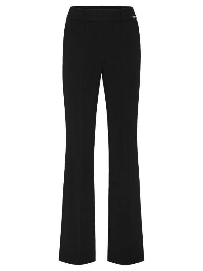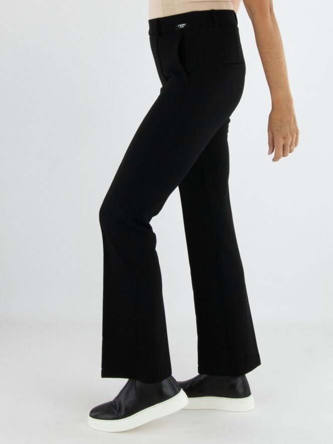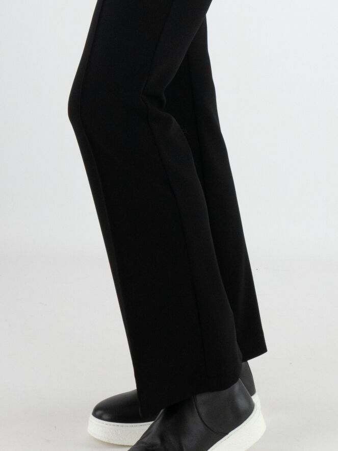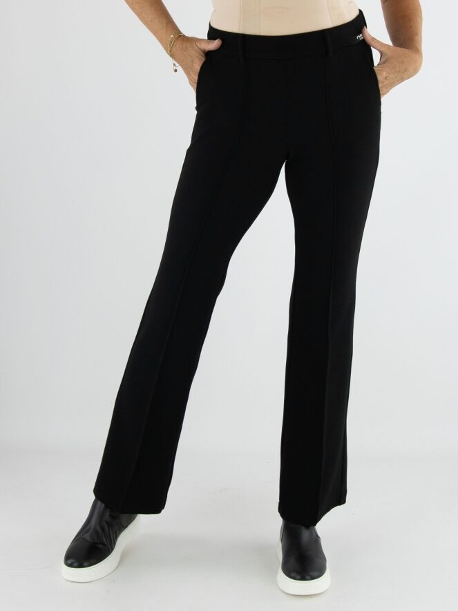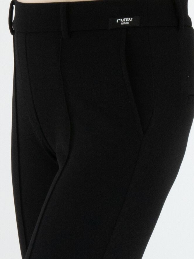 Hose von Cambio in Schwarz. Der Bund ist elastisch. In der Mitte der Hosenbeine verläuft eine nach außen gelegte Naht. Die Hose hat Eingrifftaschen und sollte von Hand gewaschen werden.