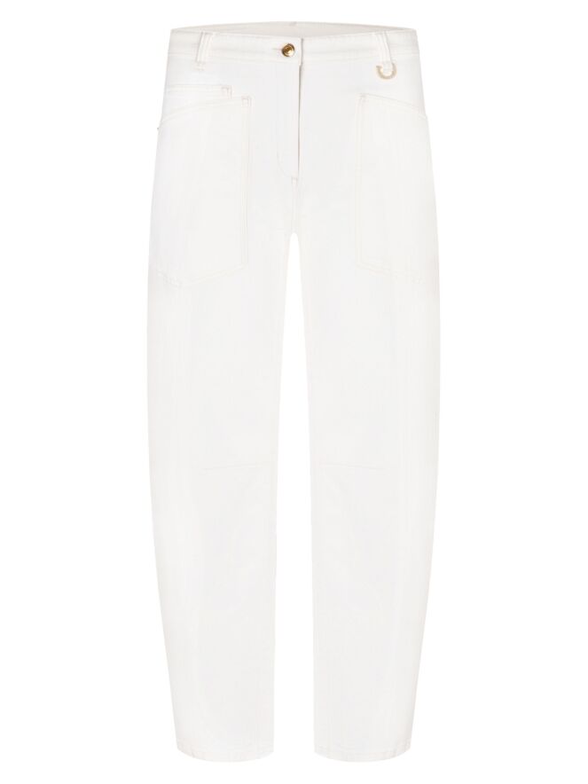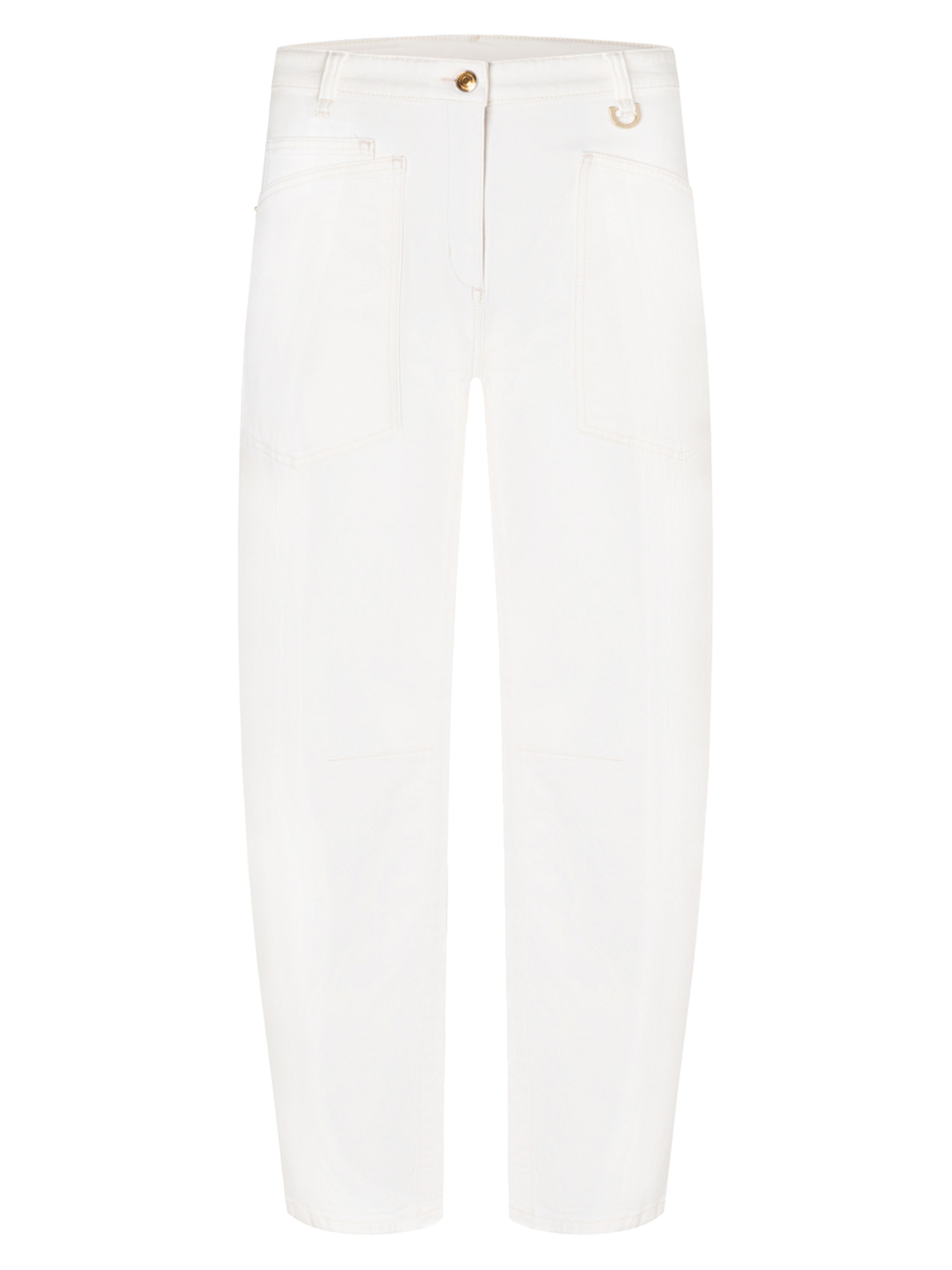 Jeans von Cambio im klassischen 5-Pocket-Stil in Weiß. Die breiten und tiefen Fronttaschen verleihen dem Modell eine moderne und komfortable Ausstrahlung. Auf Kniehöhe ist eine kurze formgebende Naht eingearbeitet, die die Silhouette dezent betont. Diese exklusive Designerjeans kann bei 30 Grad gewaschen werden.