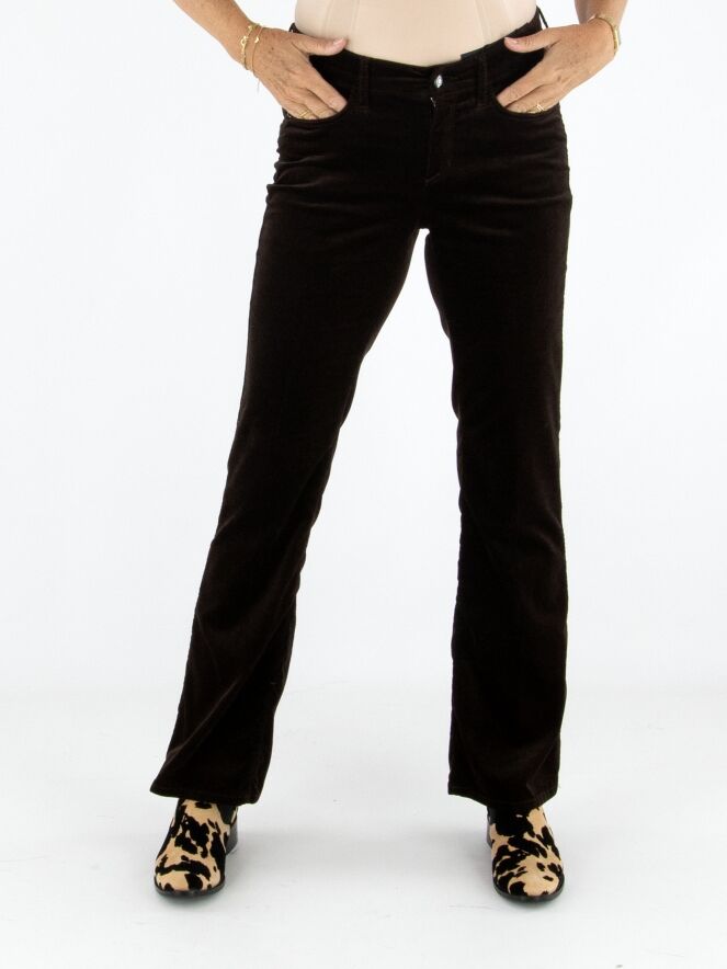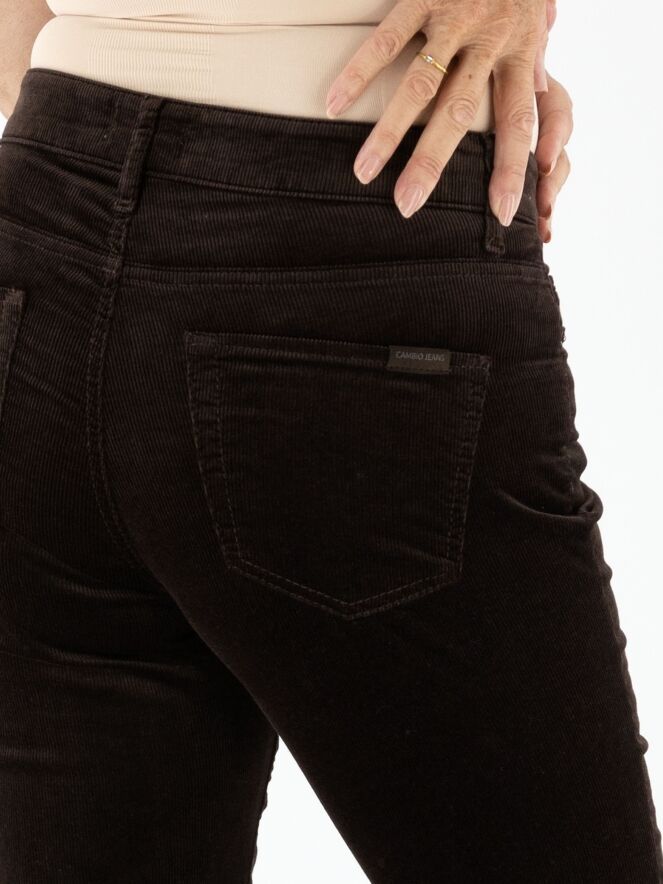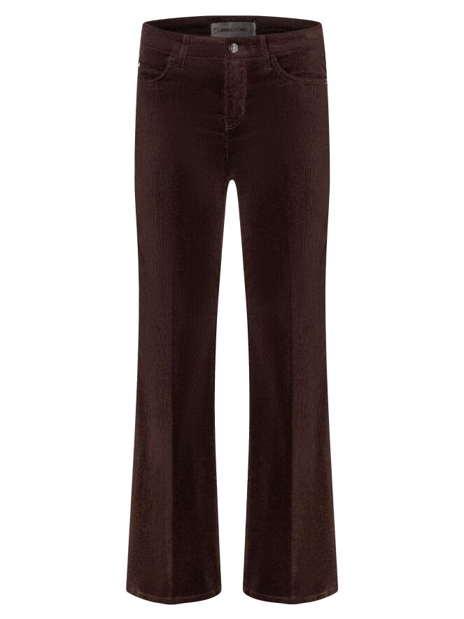 Eine Schlaghose aus Rippcord von Cambio in stilvollem Mokkabraun. Dieses moderne 5-Pocket-Modell vereint eine zeitlose Passform mit einem Hauch von Seventies-Flair und wird so zu einem vielseitigen und eleganten Bestandteil der Garderobe. Diese exklusive Designerhose kann bei 30 Grad gewaschen werden.