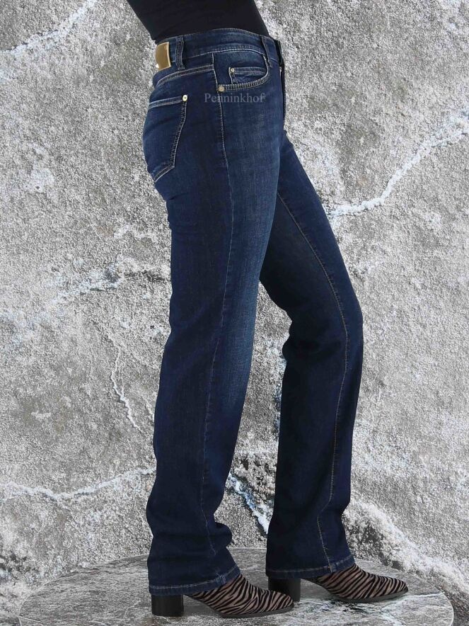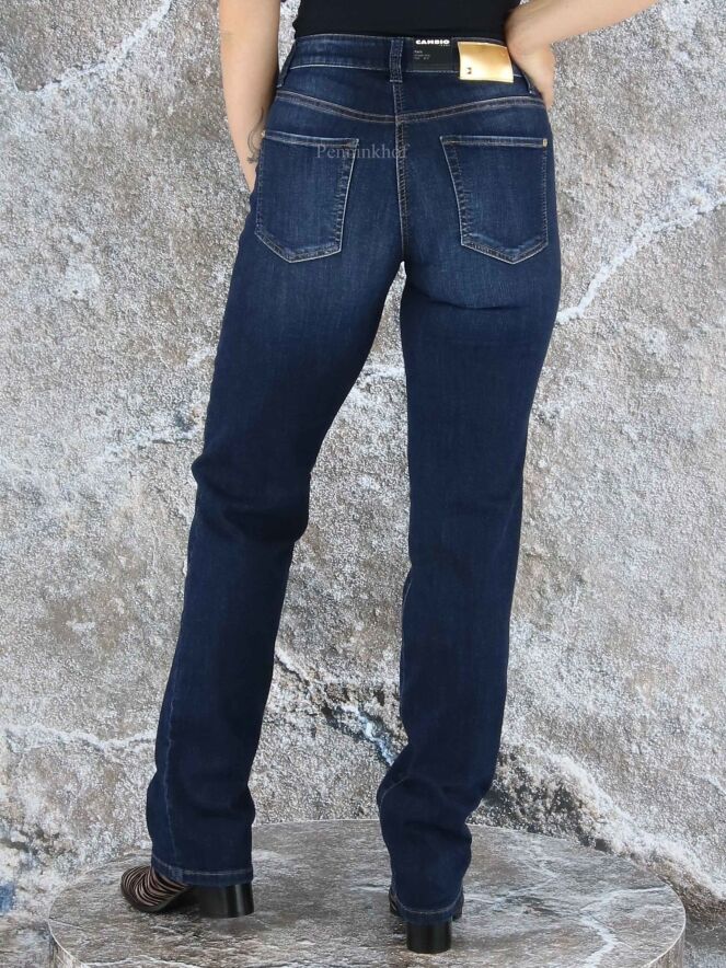 Eine verwaschene Jeans der Designermarke Cambio in einem dunklen Jeansblau. Die Jeans kommt als 5-Pocket-Modell mit geradem Bein. Diese Jeans kann bei 30 Grad gewaschen werden.