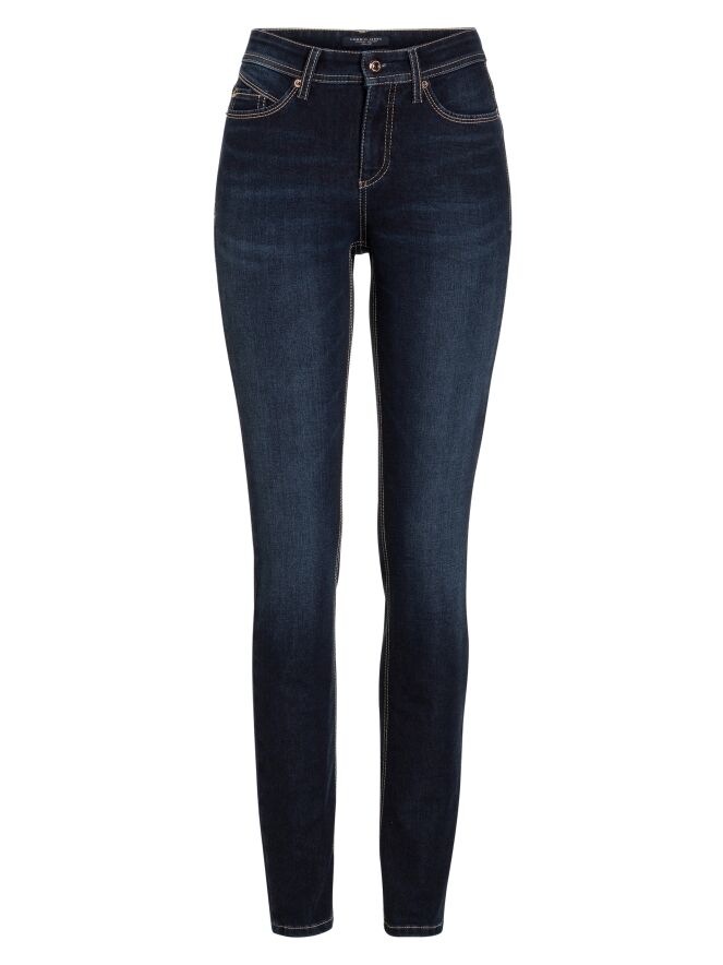 Jeans von Cambio in dunkler Denimfarbe. Die Jeans sind im 5-Taschen-Modell und können bei 30 Grad gewaschen werden.