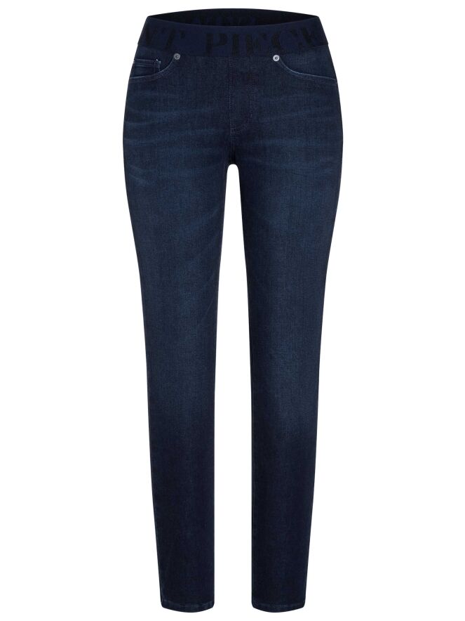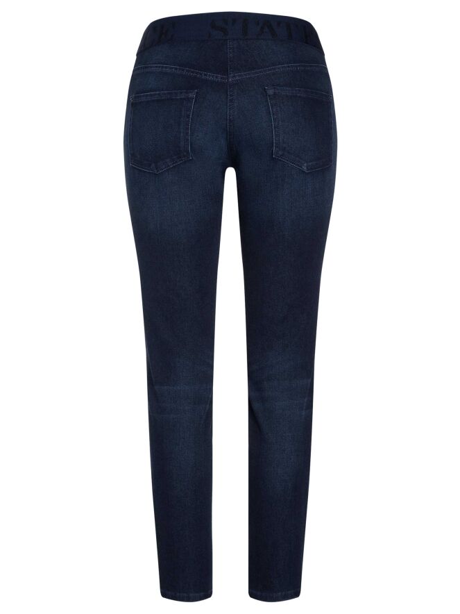 Dunkle Jeans der Designermarke Cambio. Die Jeans kommt als 5-Pocket-Modell. In der Taille befindet sich ein breiter, sehr elastischer Bund. Diese Jeans kann bei 30 Grad in der Waschmaschine gewaschen werden.