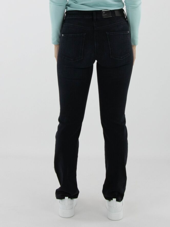 Eine Jeans von Cambio in Schwarz. Sie ist im klassischen 5-Pocket-Stil gearbeitet und kann bei 30 Grad gewaschen werden.