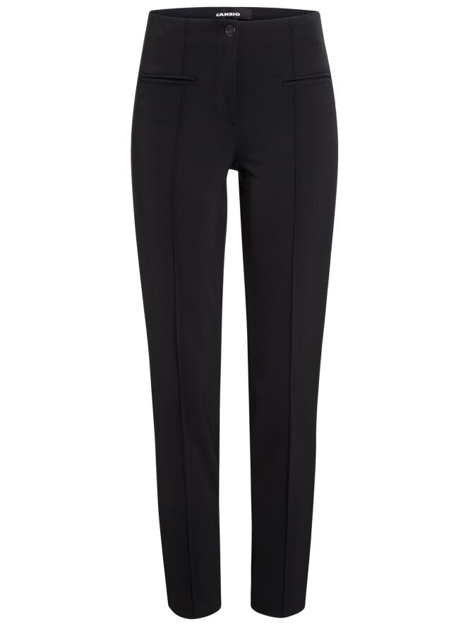Schwarze Hose der Designermarke Cambio. Diese Stoffhose kommt mit zwei Fronttaschen und kann auf 30 Grad in der Waschmaschine gewaschen werden.