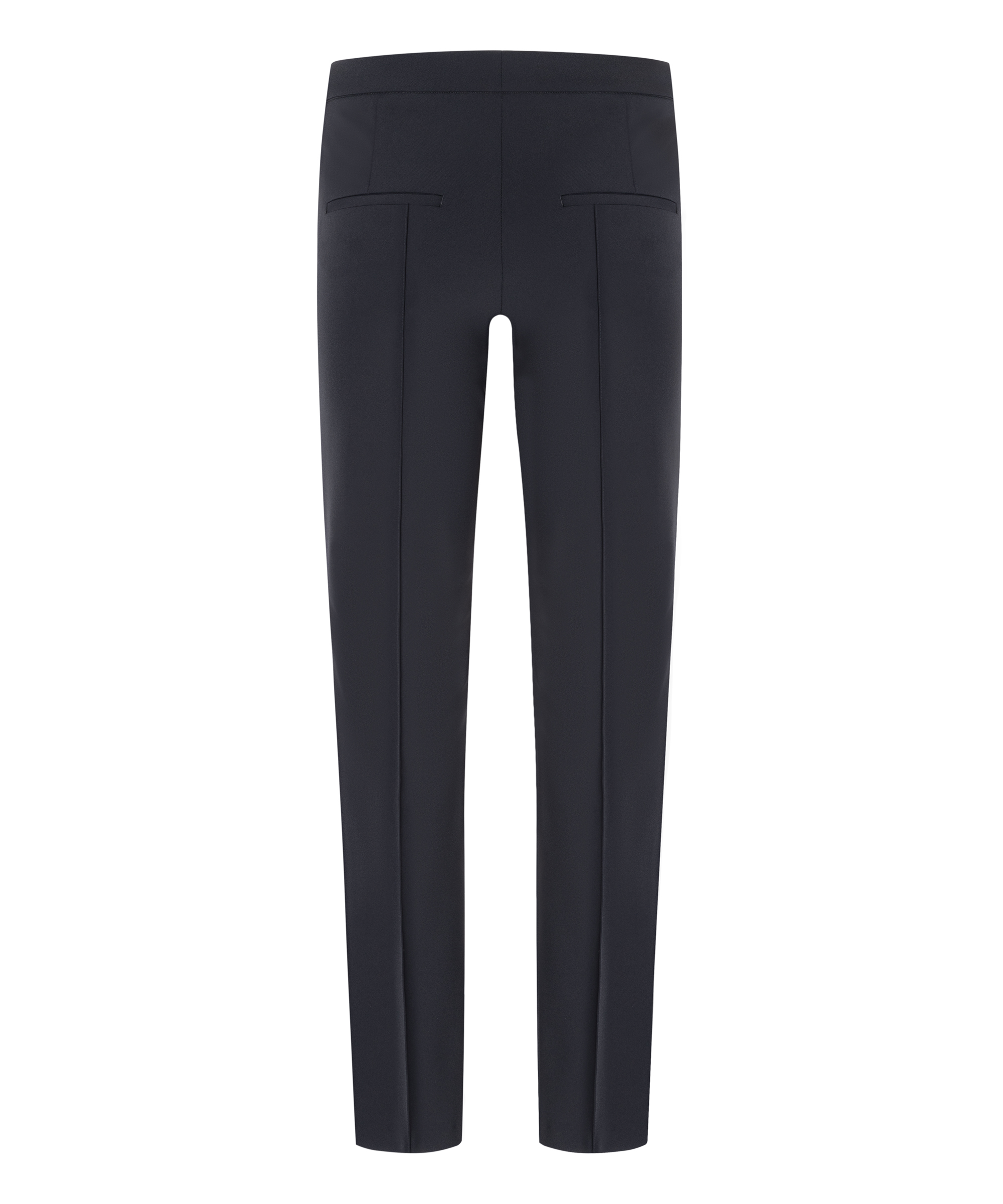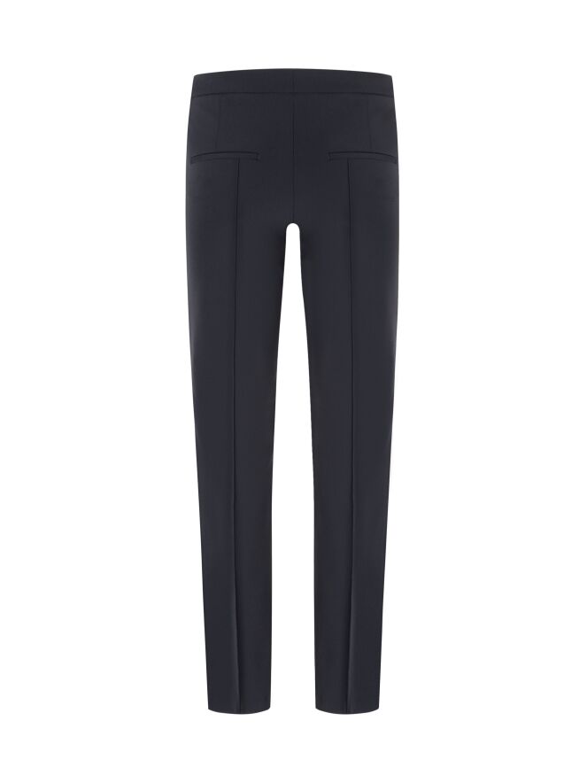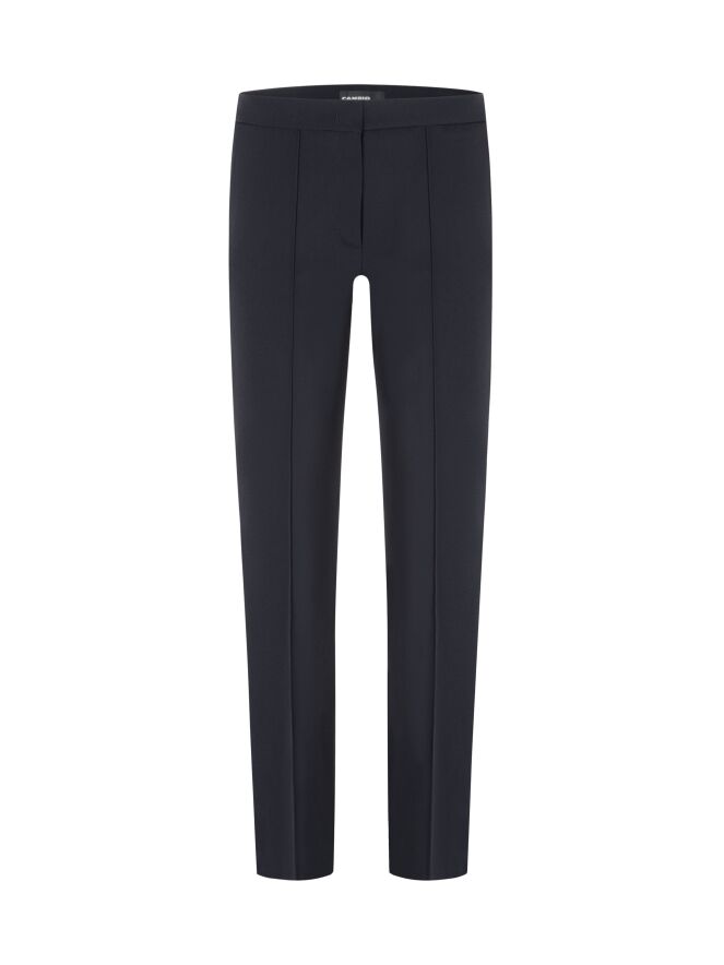 Eine schlank geschnittene Hose von Cambio in Schwarz. Mittig auf den Hosenbeinen verläuft eine umgekehrte Naht. Die Hose hat Eingrifftaschen und kann bei 30 Grad gewaschen werden.