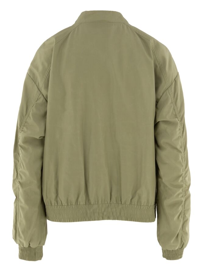 Der Reißverschluss und die Taschenreißverschlüsse sind stilvoll verarbeitet. Die Jacke hat plissierte Ärmel; dieses Detail findet sich auch am Saum wieder. Die Jacke kann bei 30 Grad gewaschen werden.