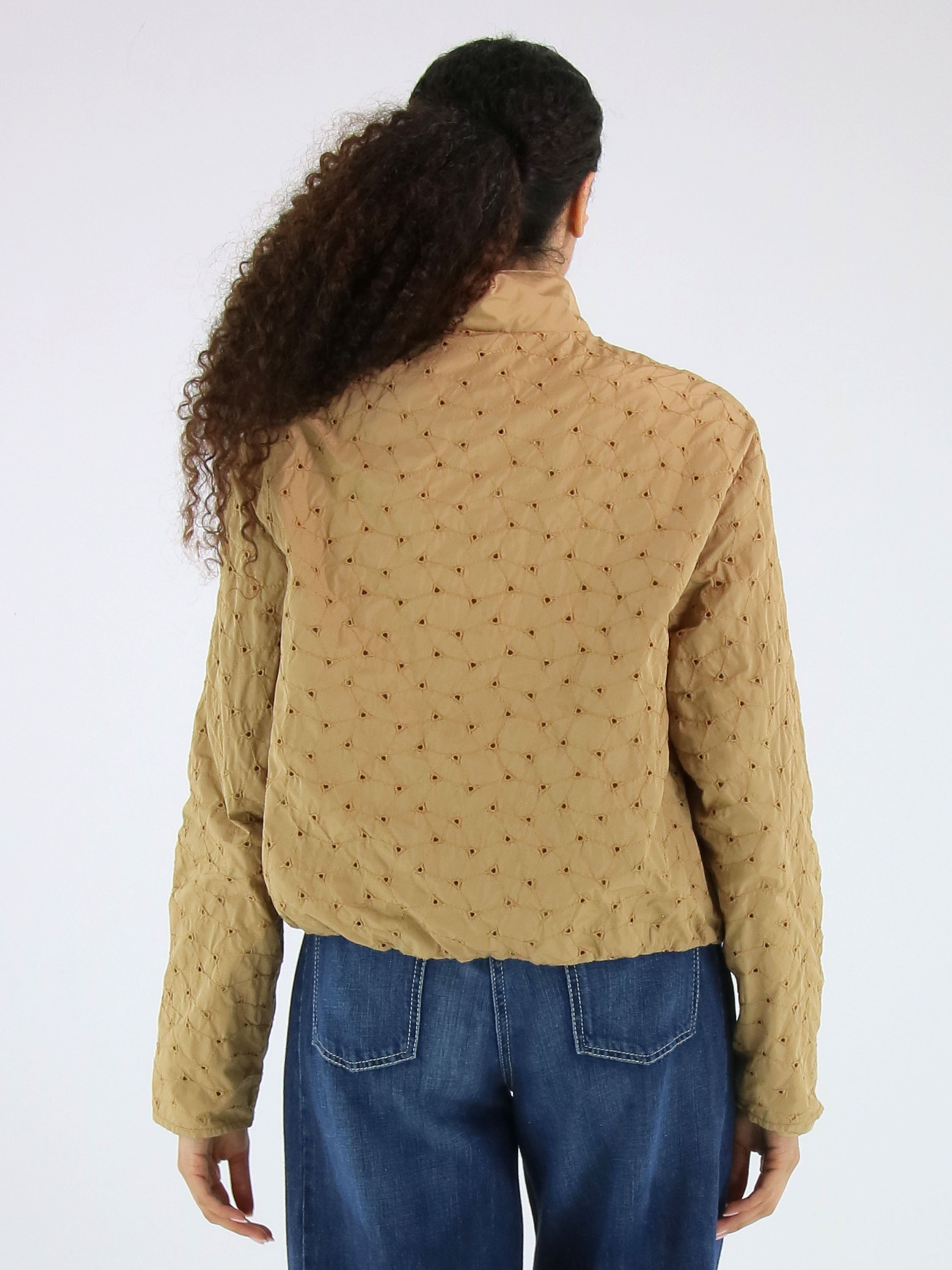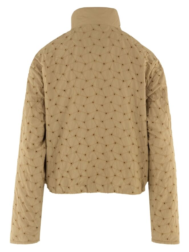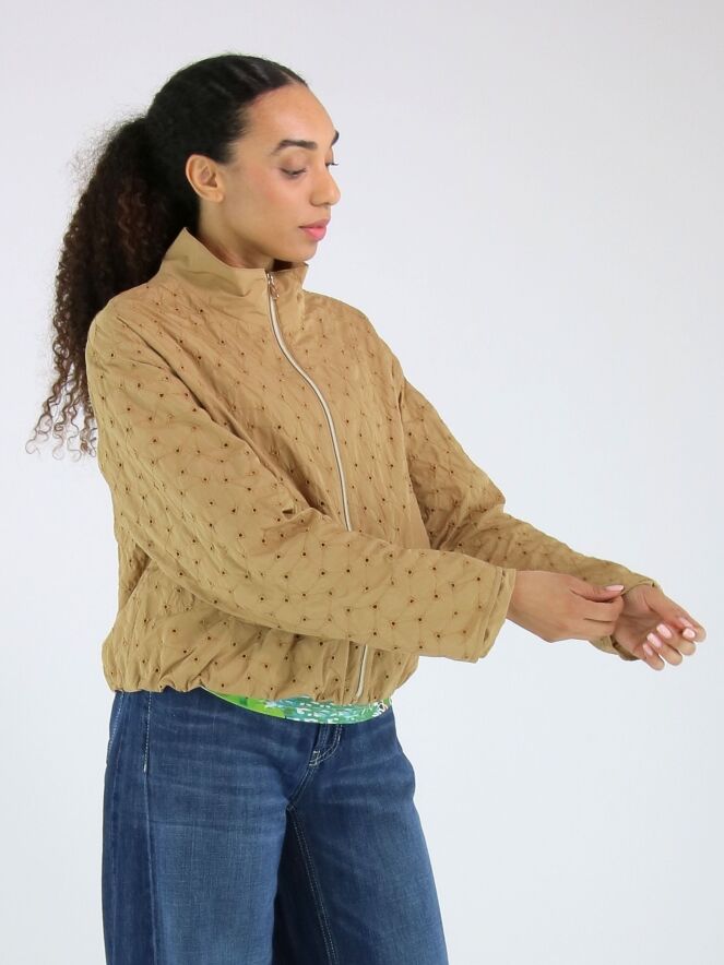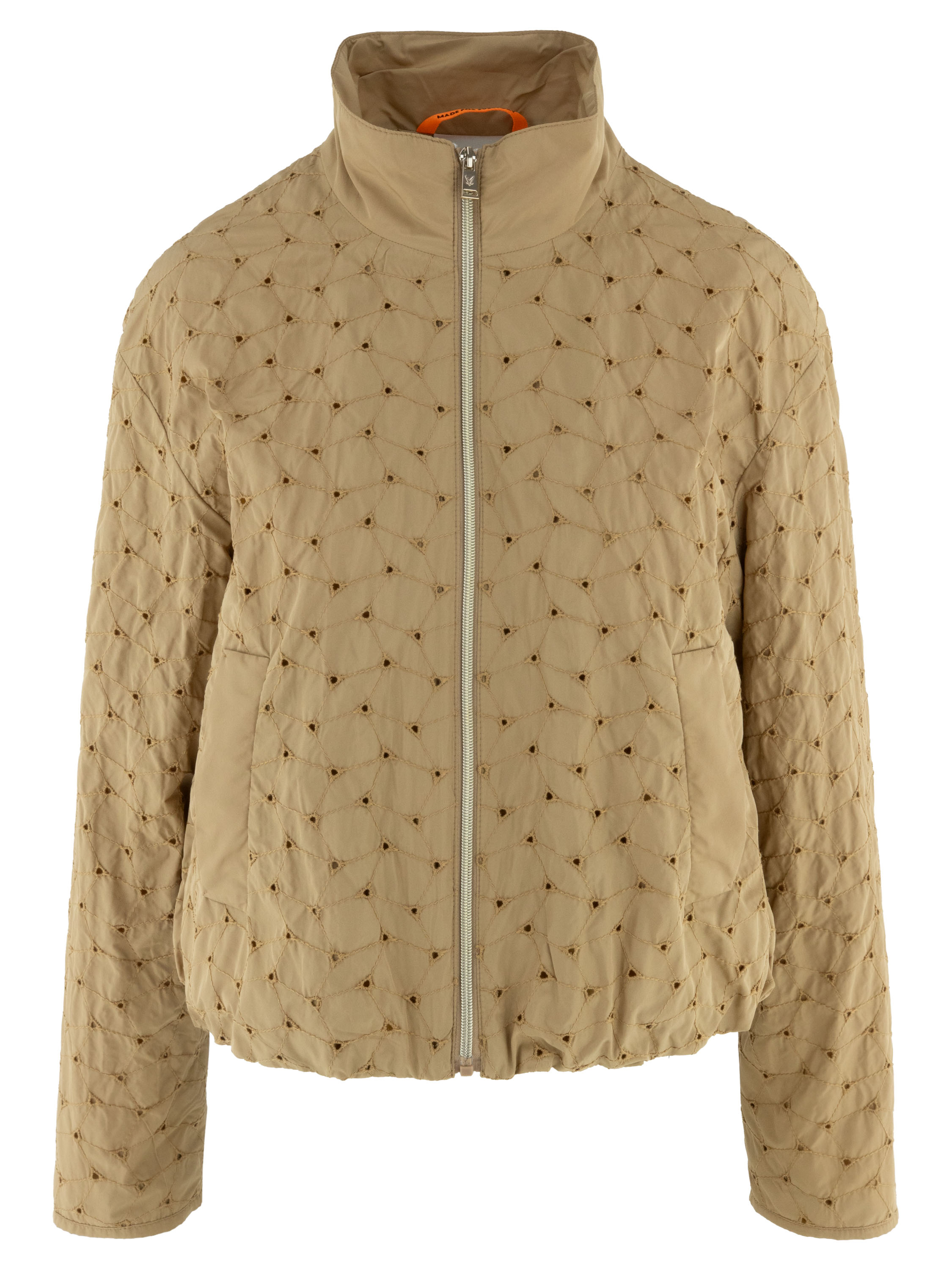 Sommermantel von Fuchs Schmitt in einem warmen Camelton. Der Stoff ist mit dekorativen Steppnähten in einem dezenten Rautenmuster versehen und an den Kreuzungspunkten perforiert, was eine luftige und elegante Optik erzeugt. Der Mantel verfügt über einen silberfarbenen Reißverschluss und praktische Eingrifftaschen. Dieser exklusive Damenmantel kann bei 30 Grad gewaschen werden.