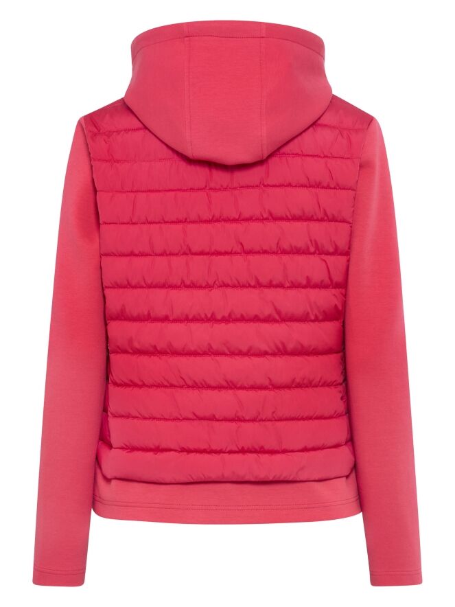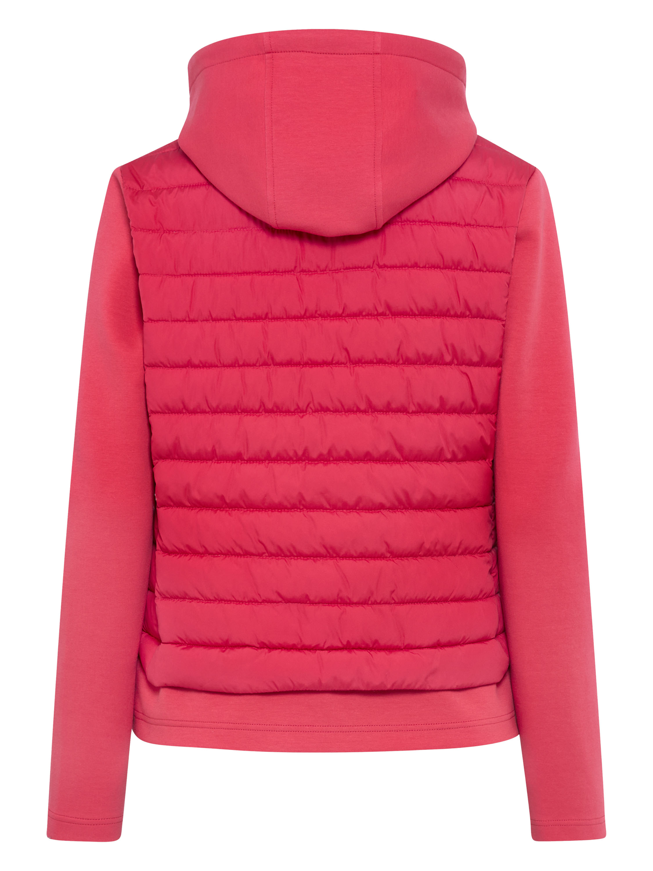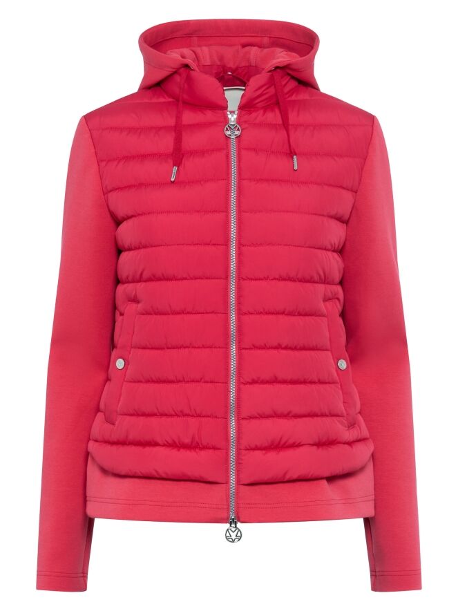 Gesteppter Mantel von Fuchs Schmitt in einem frischen Rotton. Im Saum der Kapuze ist ein Kordelzug eingearbeitet, der individuell angepasst werden kann und zusätzlichen Schutz bietet. Die Ärmel sind aus mattem, unifarbenem Stoff gefertigt und bilden einen dezenten Kontrast zum gesteppten Hauptteil. Dieser Mantel kann bei 30 Grad gewaschen werden.