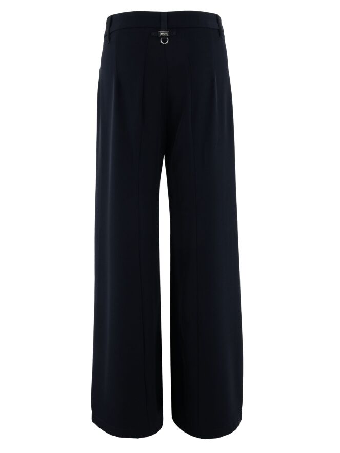 Weit geschnittene Hose von High in einem eleganten Marineblau. Vorderseitig, direkt unter dem Bund, sind zwei dekorative Taschen eingearbeitet, die dem Design eine markante Note verleihen. Eine mittige Naht verläuft über die gesamte Länge der Vorderseite der Hosenbeine und sorgt für eine schlanke, moderne Silhouette. Diese Hose darf nicht gewaschen werden.