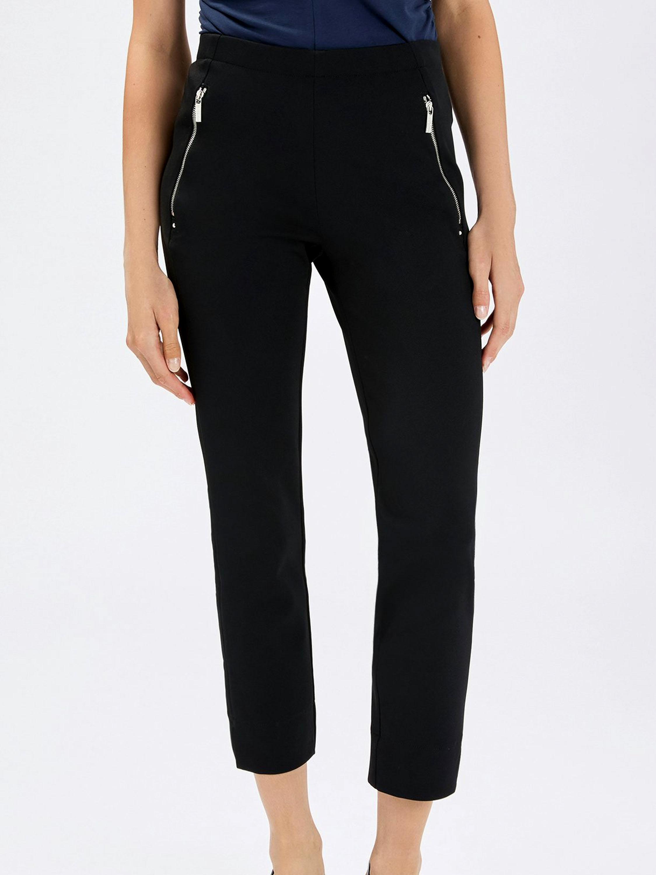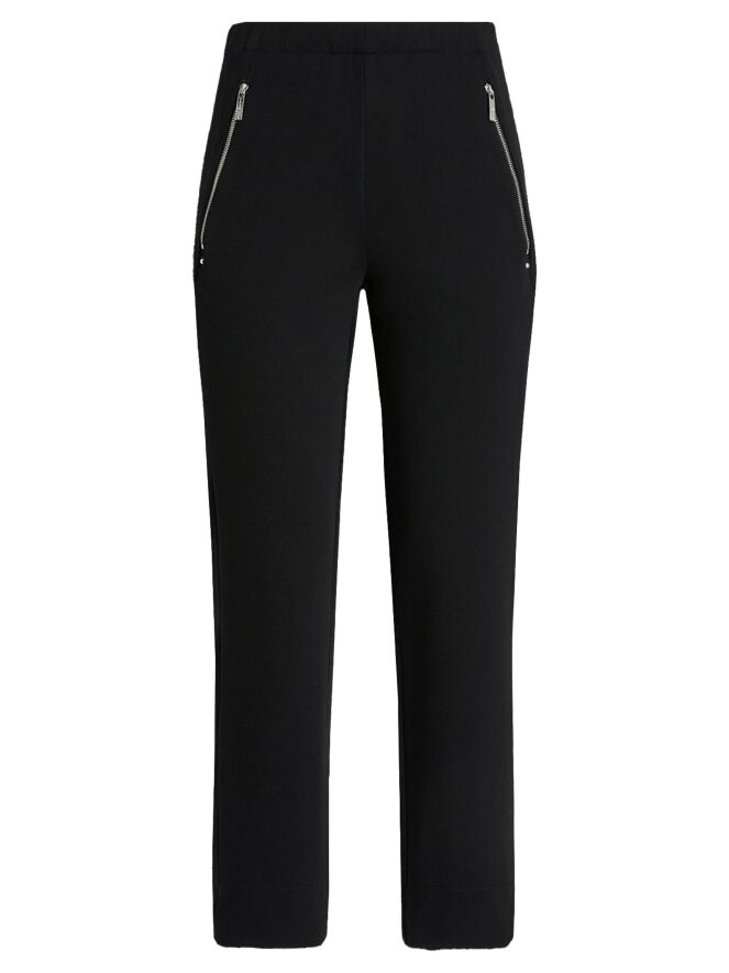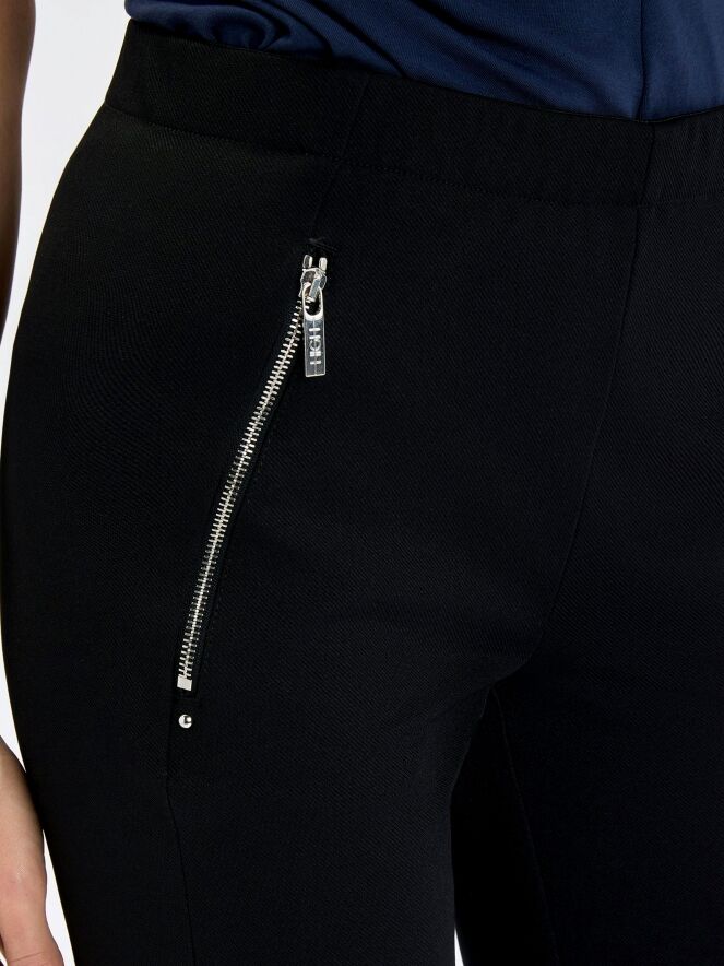Hose von High in Schwarz. Der Bund ist mit einem elastischen Einsatz versehen, der für eine bequeme Passform sorgt. Die Eingrifftaschen sind mit silberfarbenen Reißverschlüssen ausgestattet, die dem Design eine moderne, leicht markante Note verleihen. Diese Hose sollte per Hand gewaschen werden.