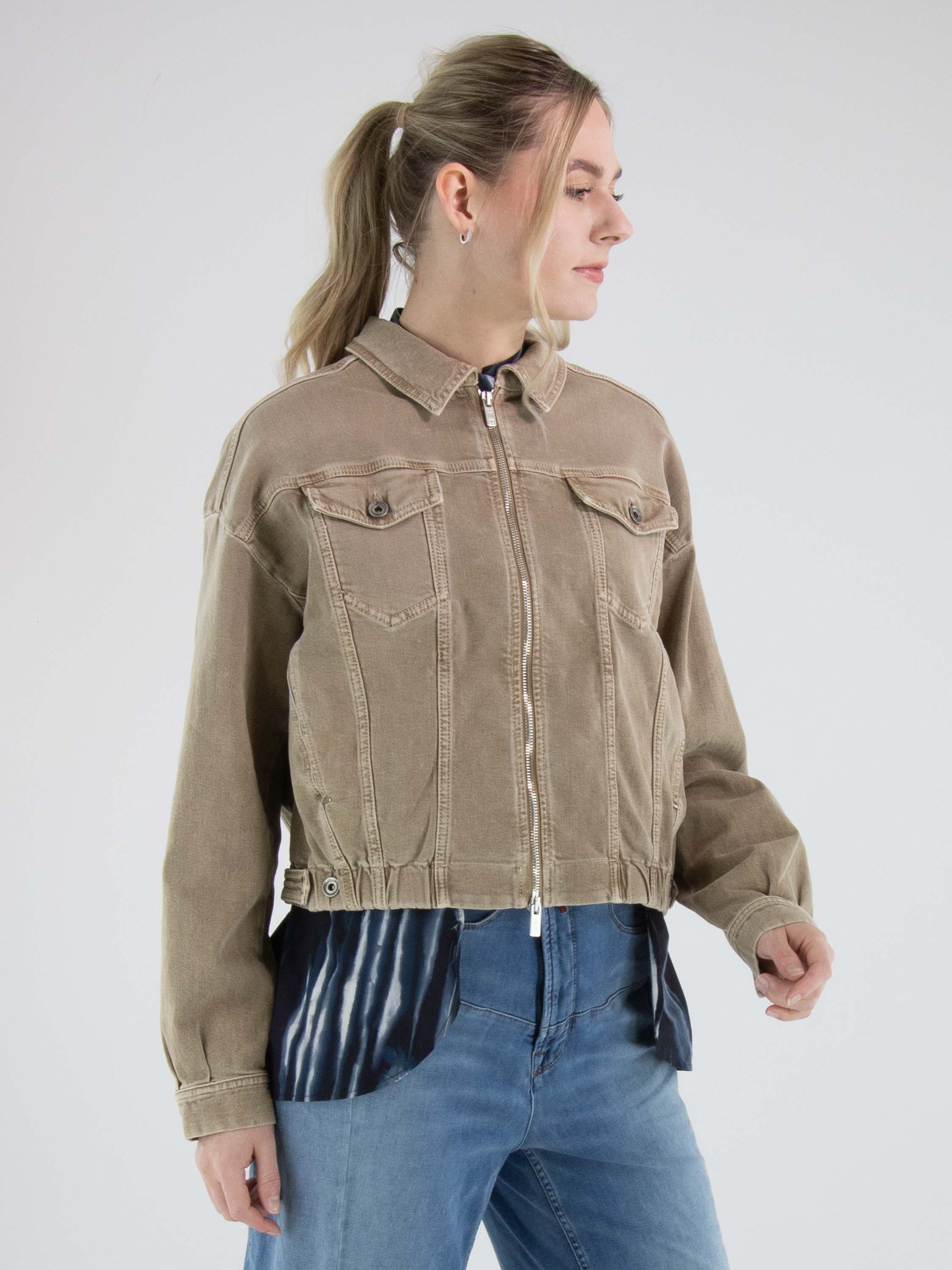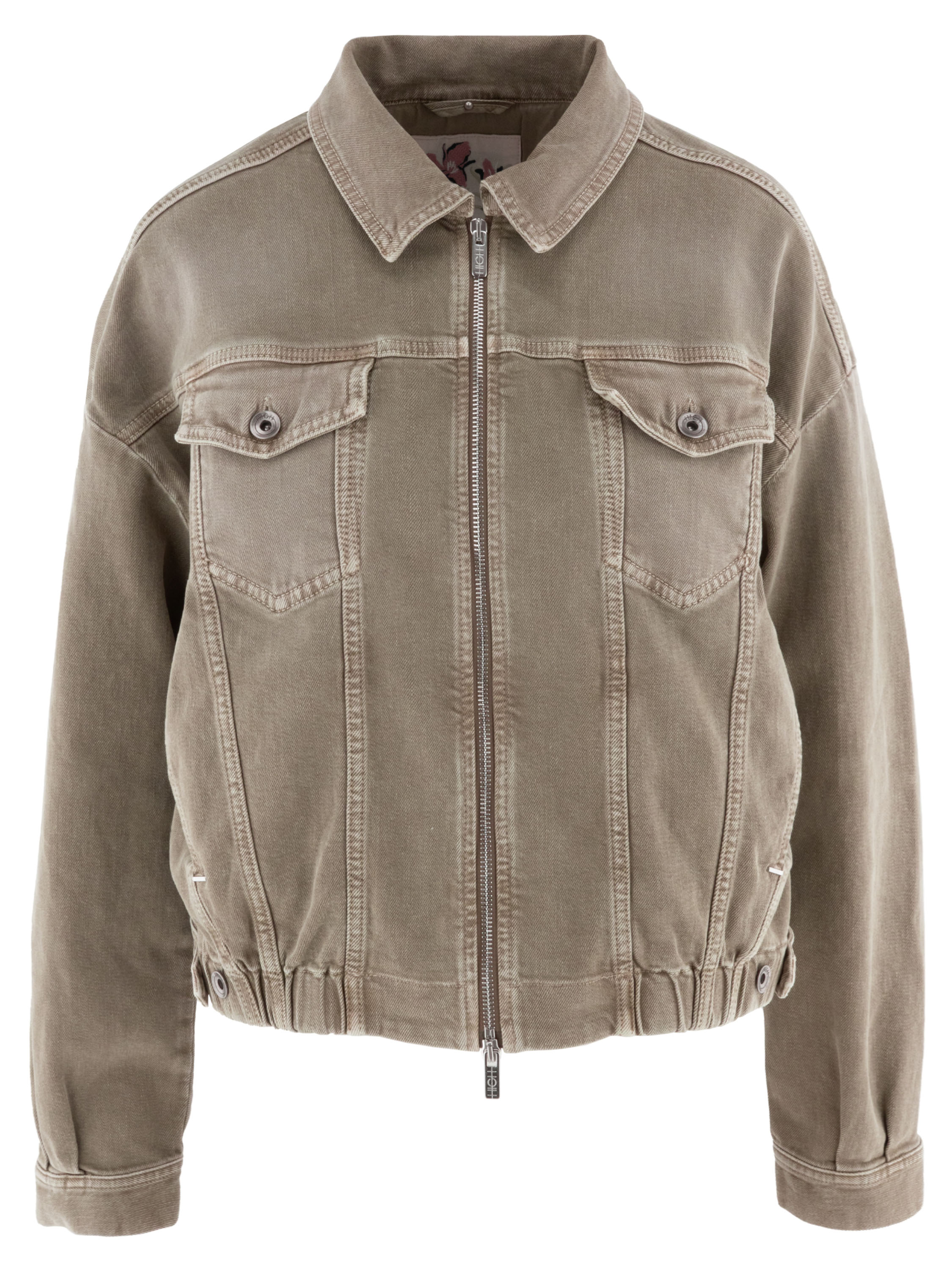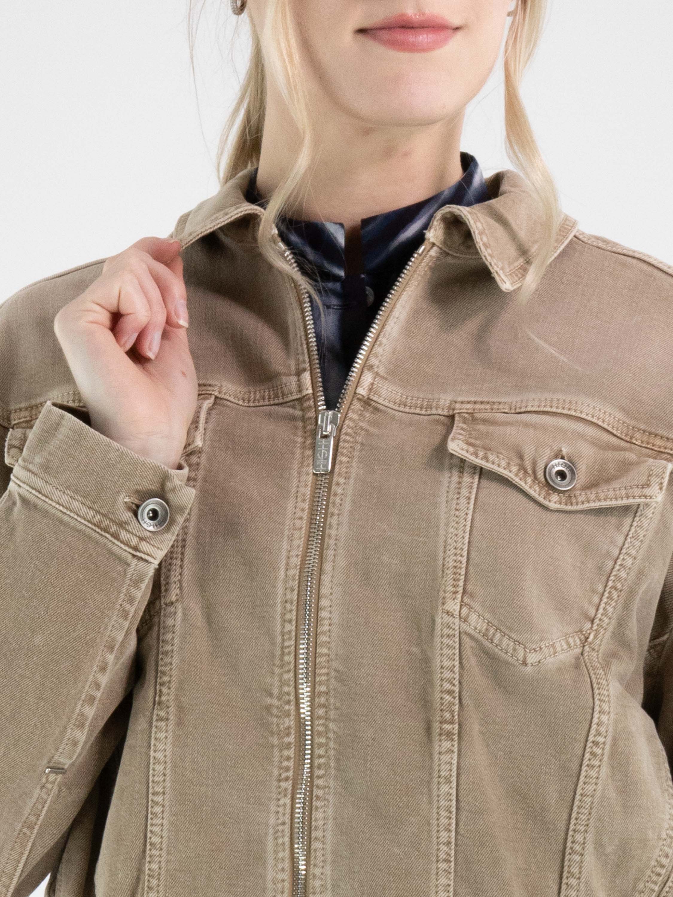 Jeansjacke von High in einem Used-Braunton. Das Modell verfügt über einen Reißverschluss und einen elastischen Bund am Saum, der den Denimstoff leicht rafft und dem Design eine moderne Silhouette verleiht. Diese Jacke kann bei 30 Grad gewaschen werden.