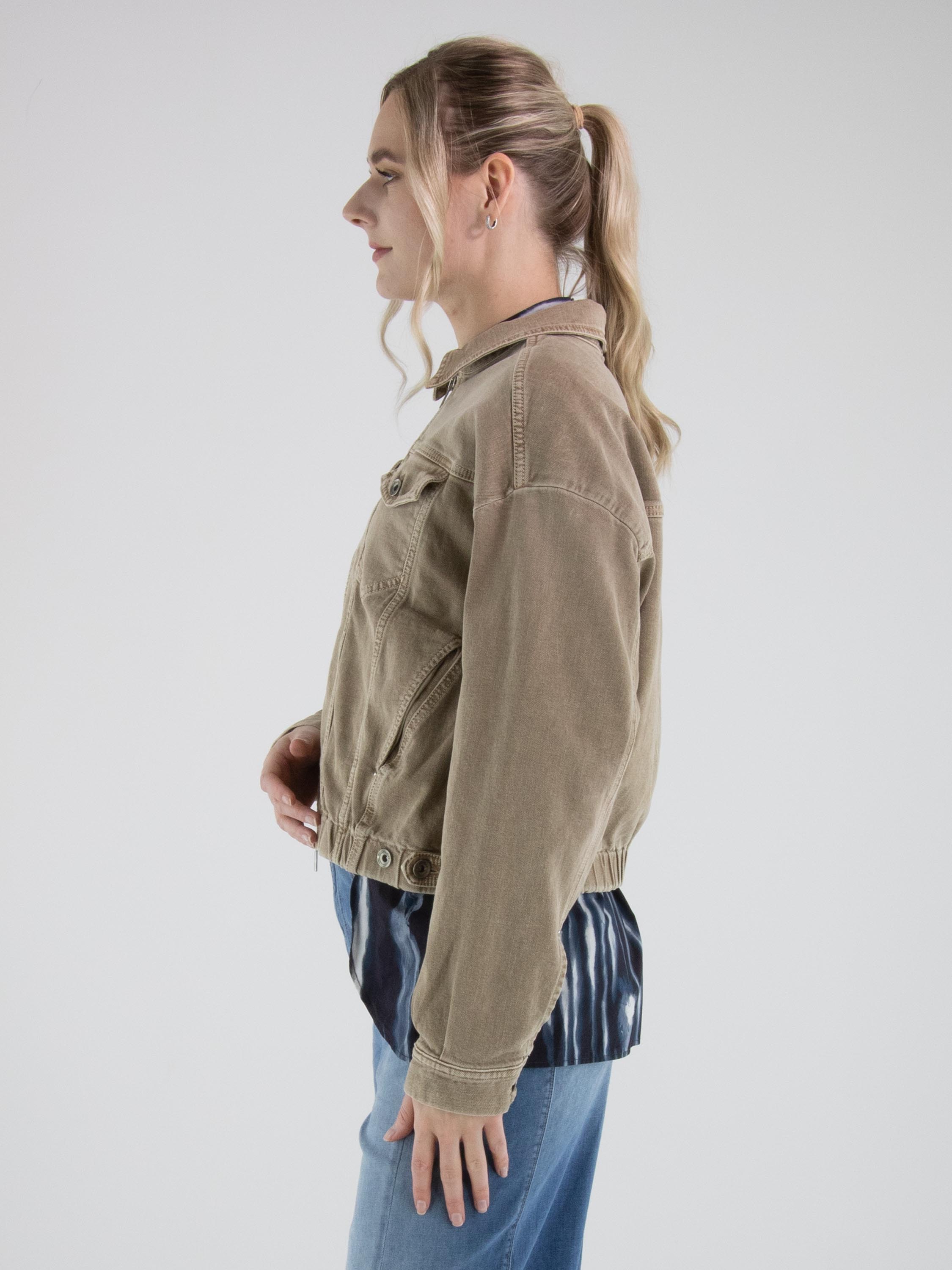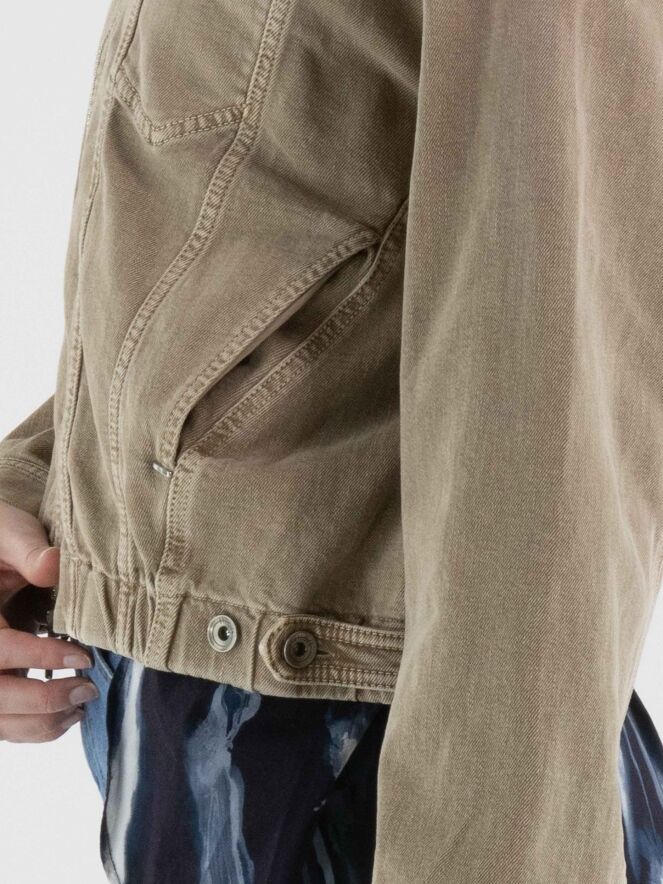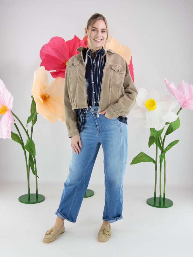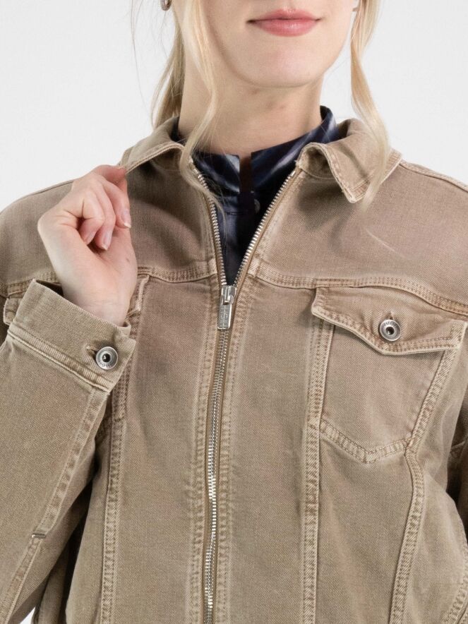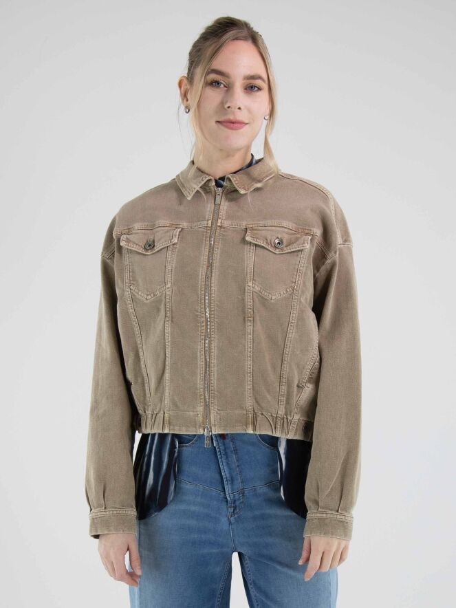 Jeansjacke von High in einem Used-Braunton. Das Modell verfügt über einen Reißverschluss und einen elastischen Bund am Saum, der den Denimstoff leicht rafft und dem Design eine moderne Silhouette verleiht. Diese Jacke kann bei 30 Grad gewaschen werden.