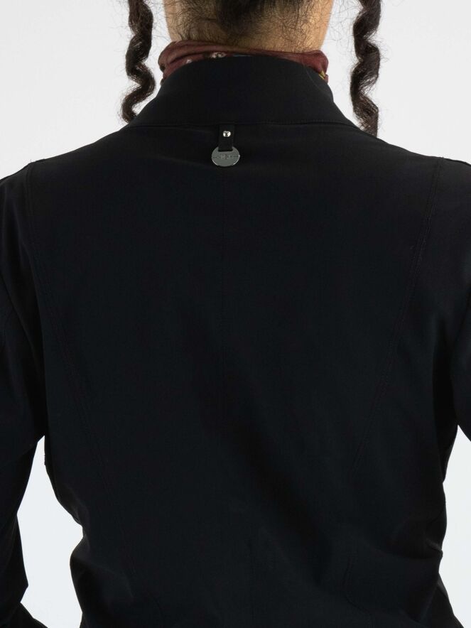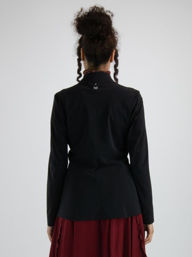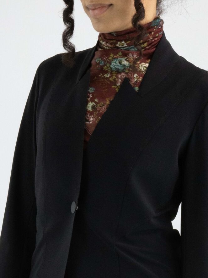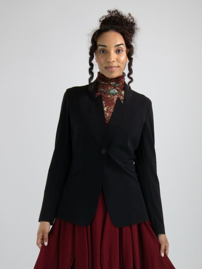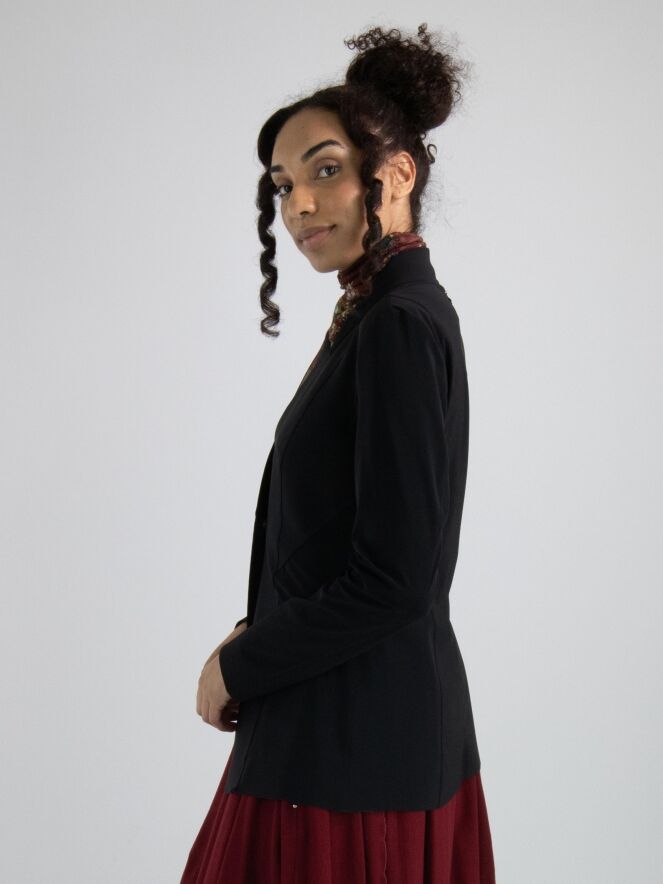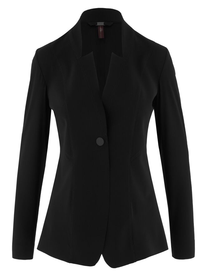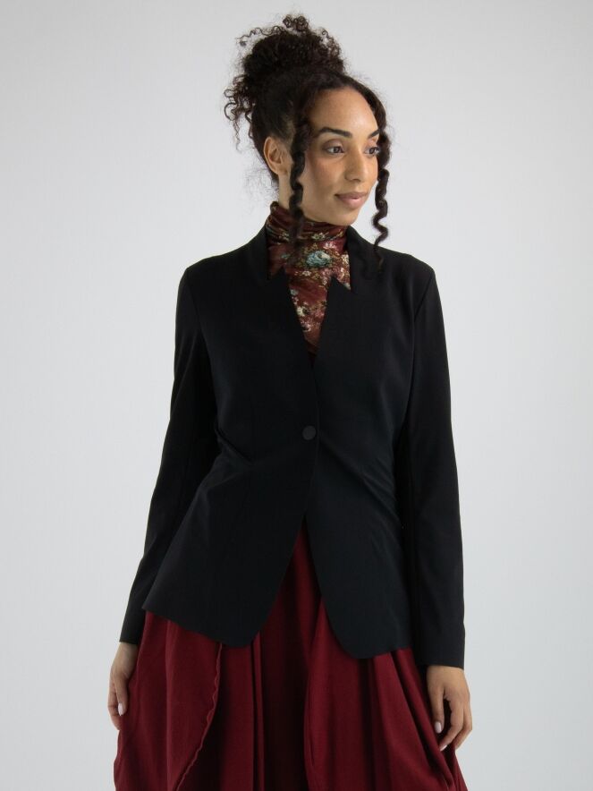 Ein luxuriöser Blazer von High in Schwarz. Der Blazer ist leicht tailliert, hat einen Verschluss mit einem Druckknopf und ist ungefüttert. Dieser Blazer kann von Hand gewaschen werden.