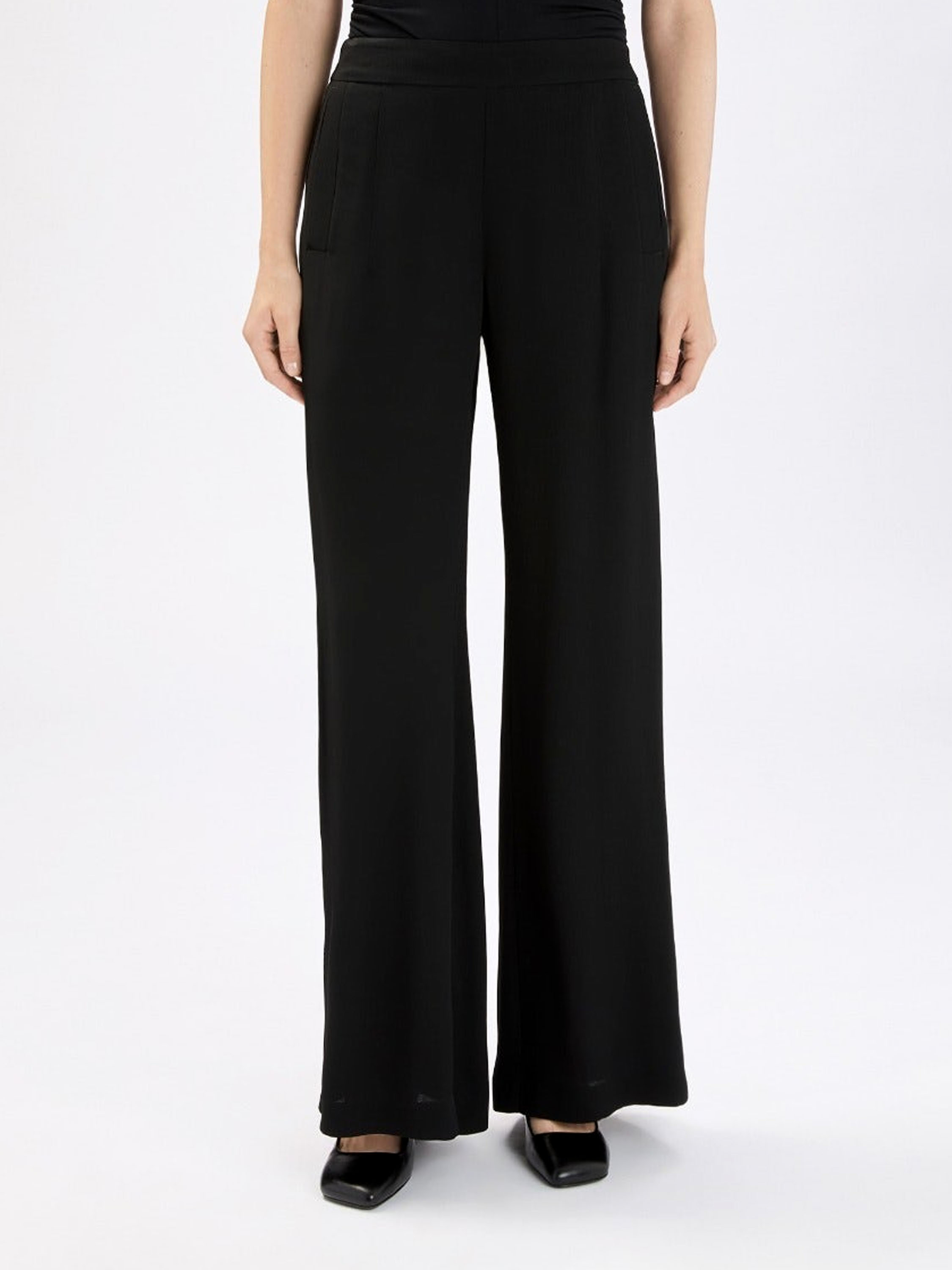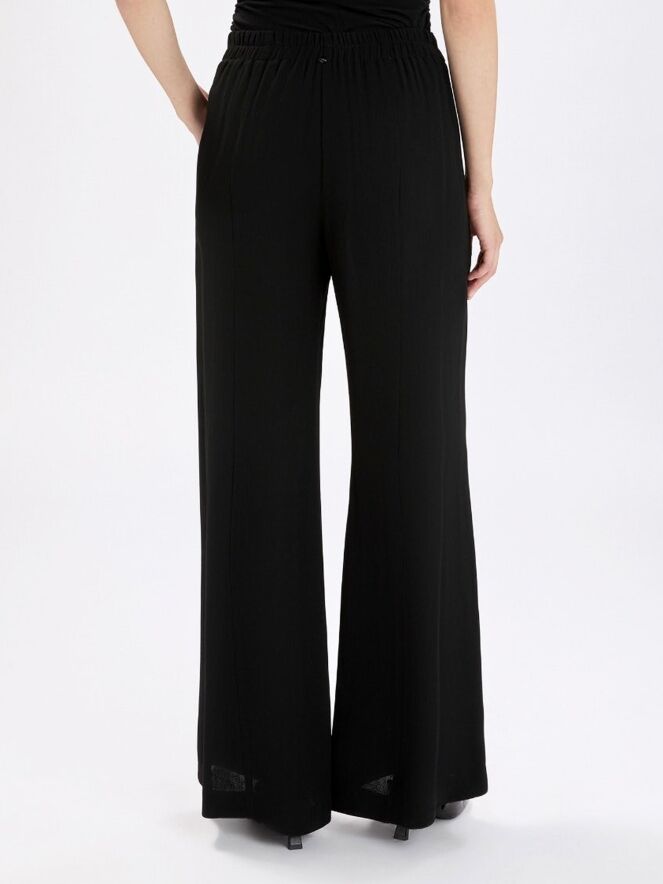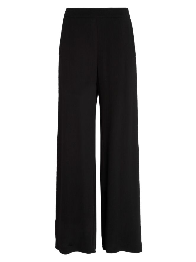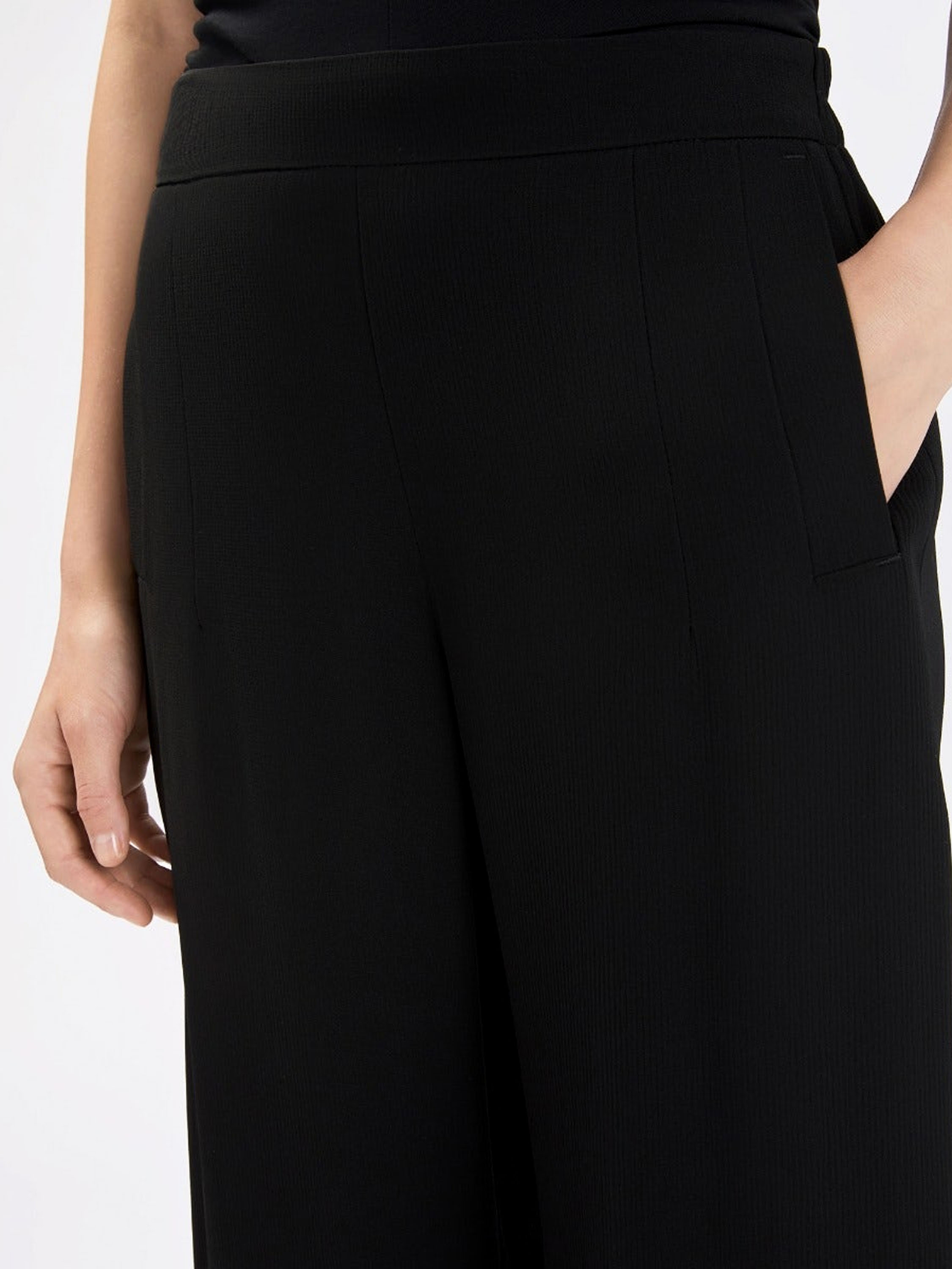 Hose von High aus fein gerippter Ware in Schwarz. An der Rückseite des Bundes ist ein fein gefalteter Bund eingearbeitet, der für eine bequeme und dezent feminine Passform sorgt. Mit Eingrifftaschen versehen, darf diese exklusive Designerhose nicht gewaschen werden.