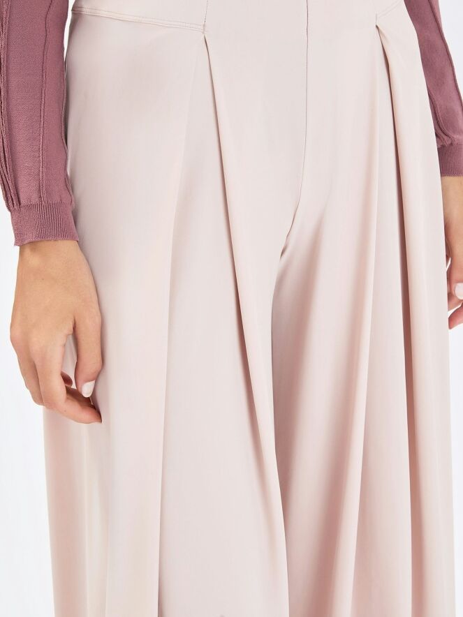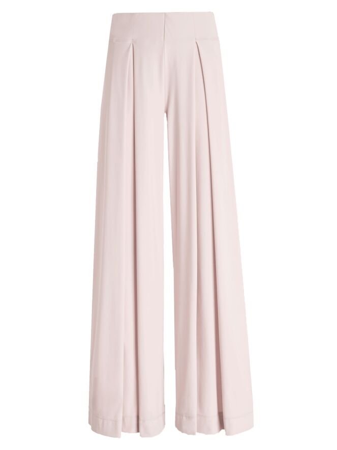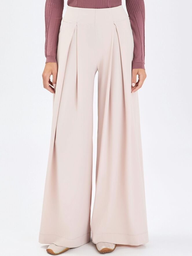 Weit geschnittene Hose von High in einem sanften Nudeton. Der Bund ist mit einem elastischen Einsatz versehen und sorgt für eine bequeme Passform. Zwei Falten unterhalb der Taille verleihen der Hose eine elegante und fließende Silhouette. Diese Hose kann bei 30 Grad gewaschen werden.