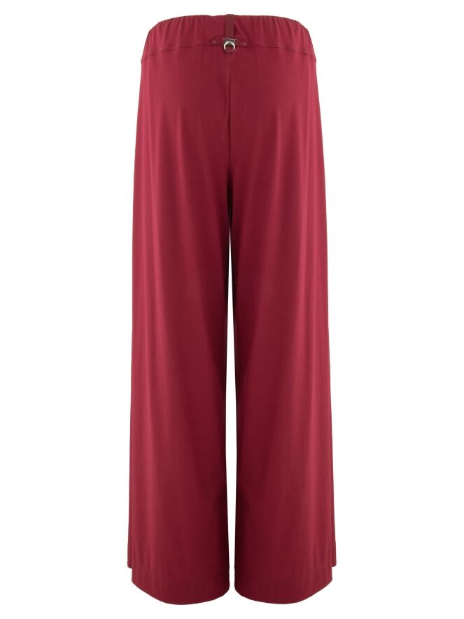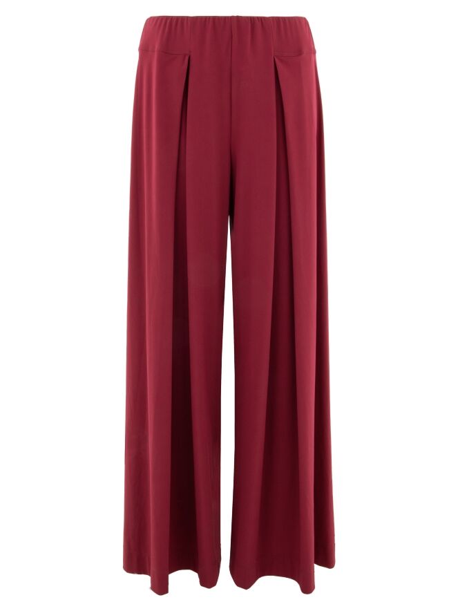 Weit geschnittene Hose von High in einem Himbeerrot. Der Bund ist mit einem elastischen Einsatz versehen, der für eine bequeme Passform sorgt. Unterhalb der Taille sind zwei Falten eingearbeitet, die dem Modell eine elegante und fließende Silhouette verleihen. Diese Hose kann bei 30 Grad gewaschen werden.
