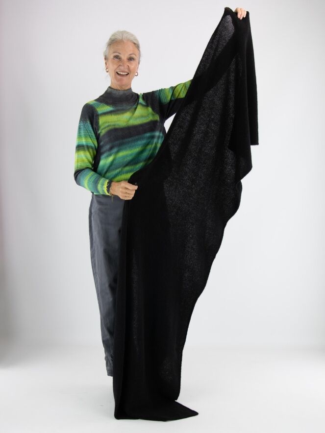 Schal von High in Schwarz. Der Schal ist fein gestrickt und sollte von Hand gewaschen werden.