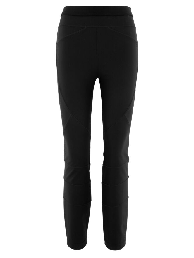 Eine Hose von High in Schwarz. In der Taille befindet sich ein elastischer Bund. Die Hose weist mehrere dekorative diagonale und horizontale Nähte auf. Diese Hose kann per Hand gewaschen werden.