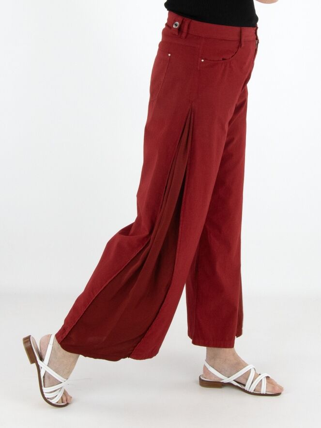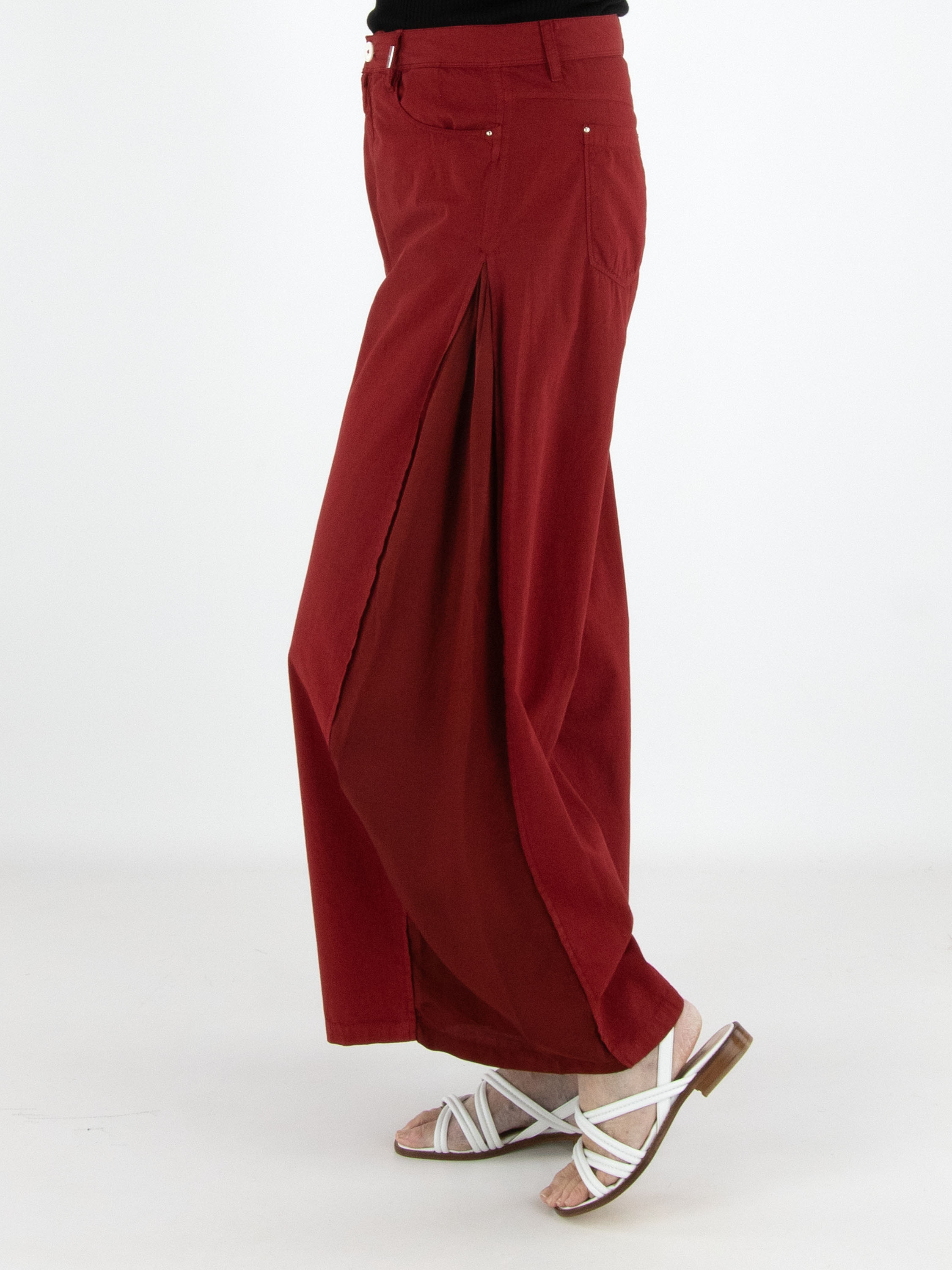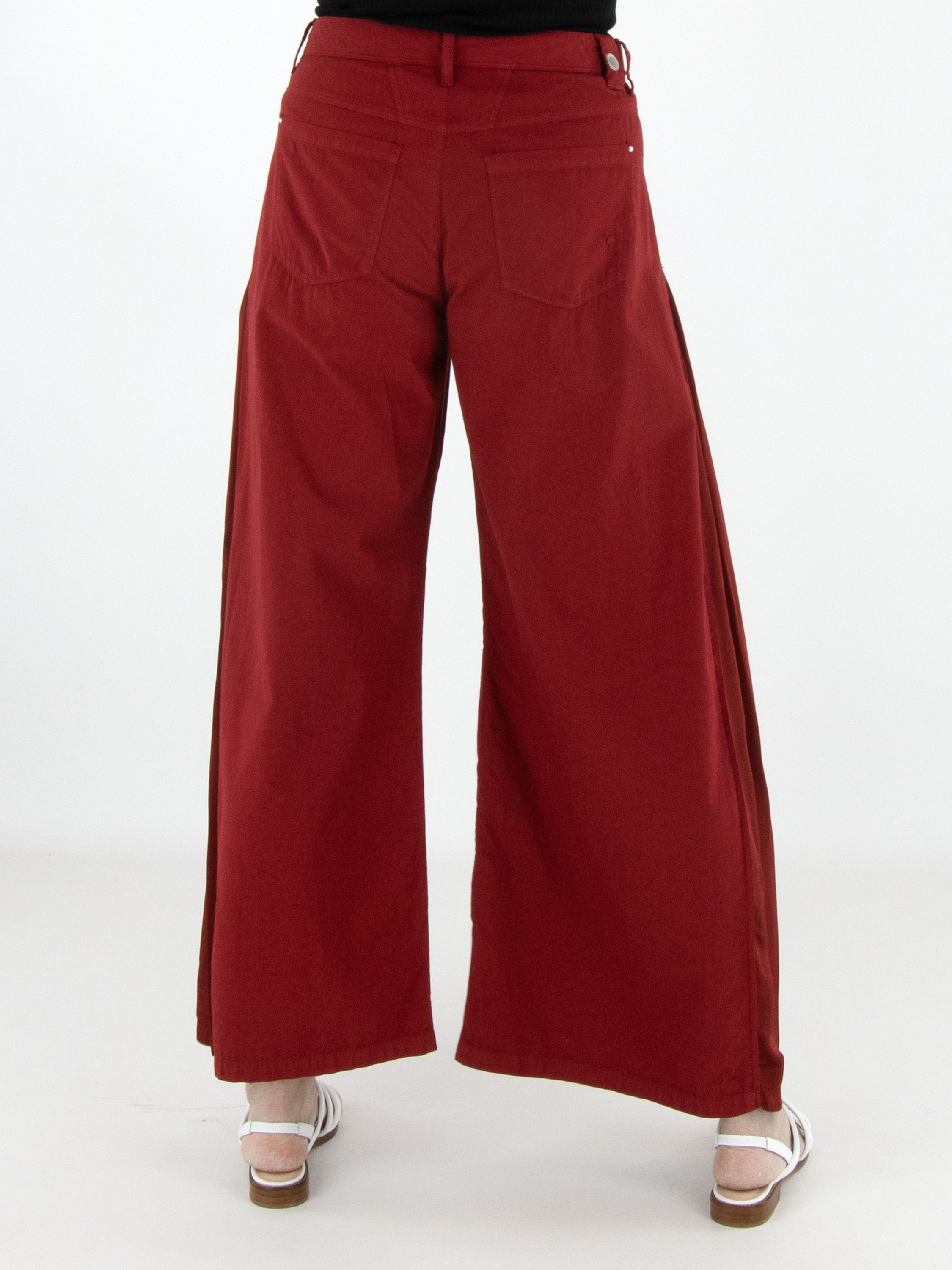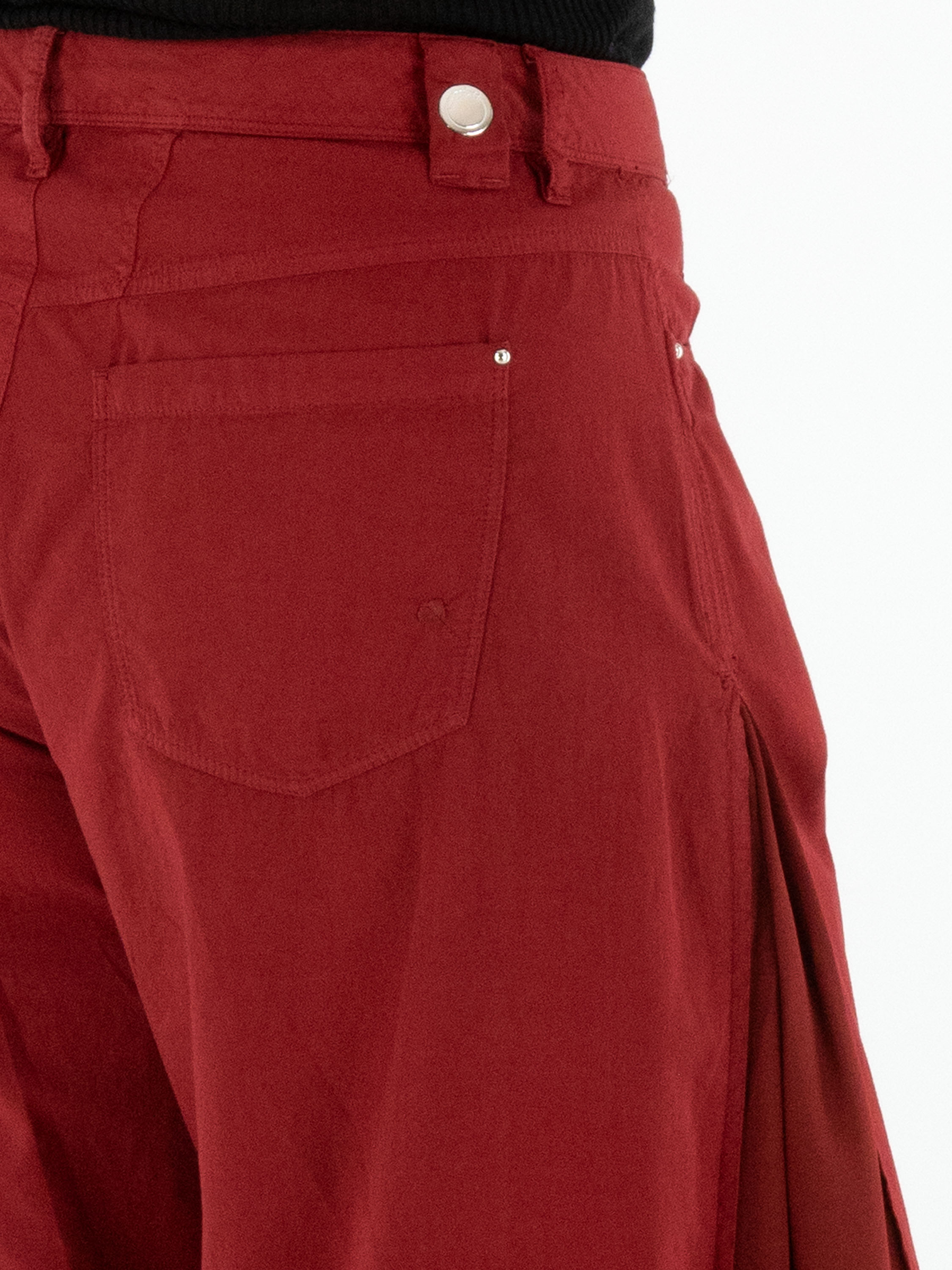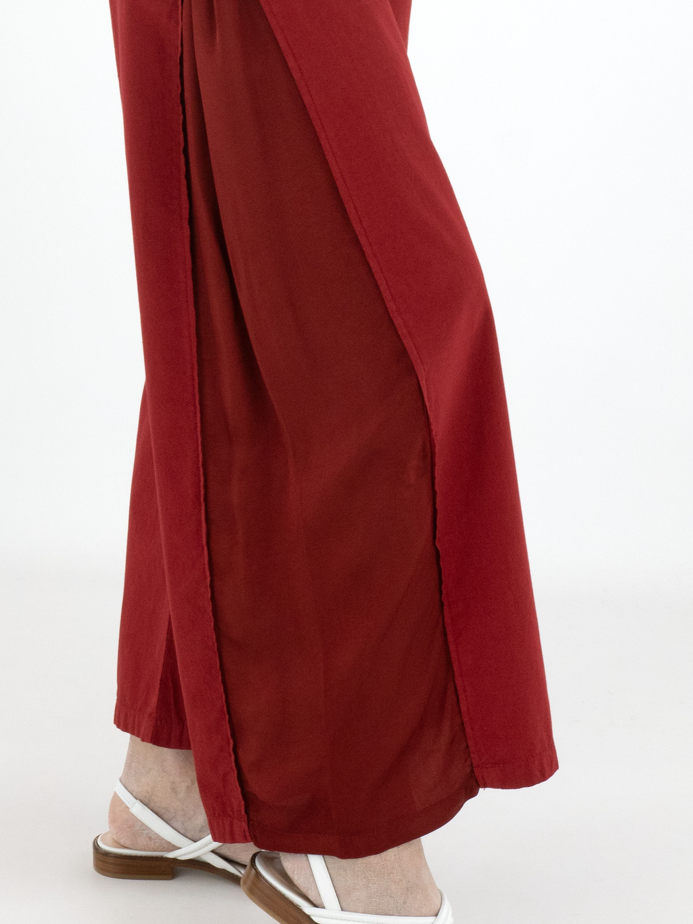 Hose von High in einem kräftigen Rotton. Entlang der Seiten ist von der Hüfte bis zum Saum ein Einsatz aus mattem Satin gearbeitet, der sich bei Bewegung dezent zeigt und einen eleganten Kontrast schafft. Diese exklusive Designerhose sollte per Hand gewaschen werden.