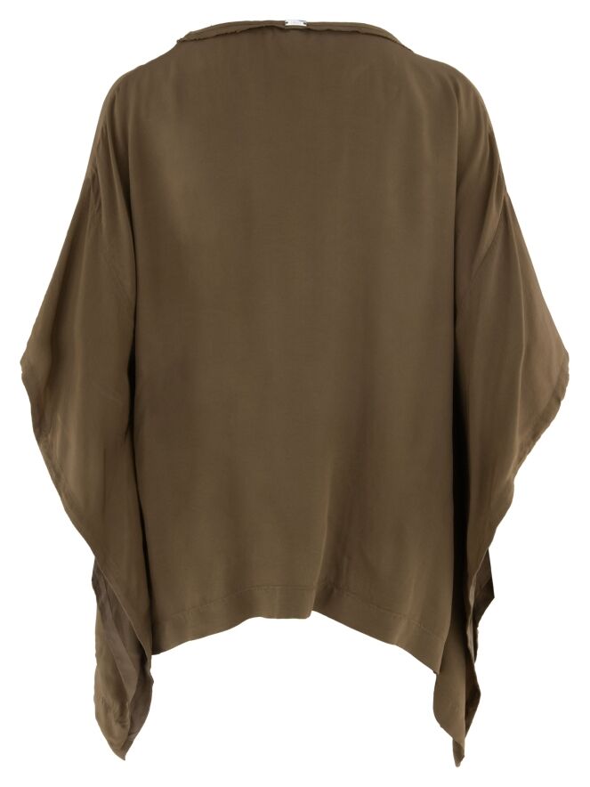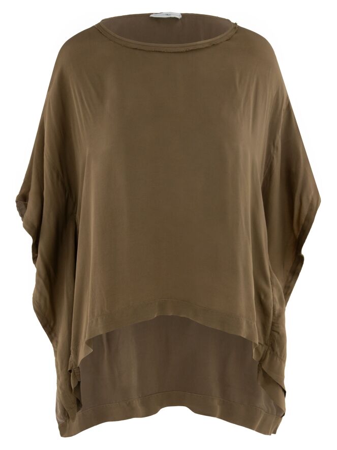 Shirt von High aus mattem Satin in einem warmen Braunton. Mit Rundhalsausschnitt und eleganten Fledermausärmeln überzeugt es durch eine fließende, feminine Silhouette. Dieses exklusive Designershirt kann bei 30 Grad gewaschen werden.
