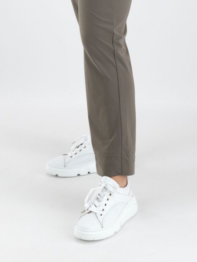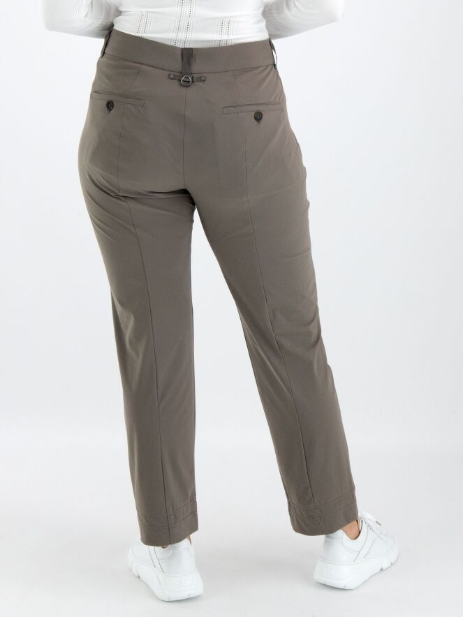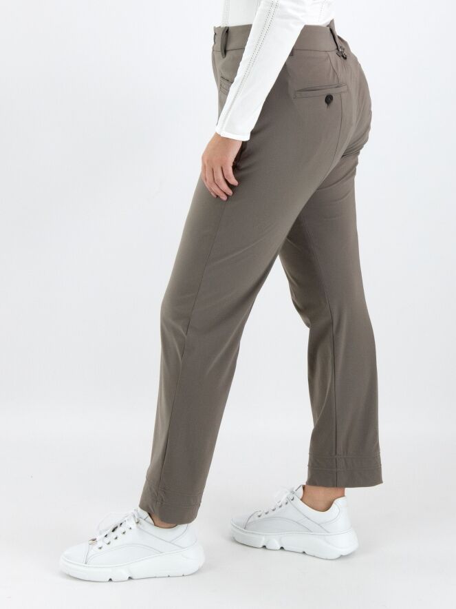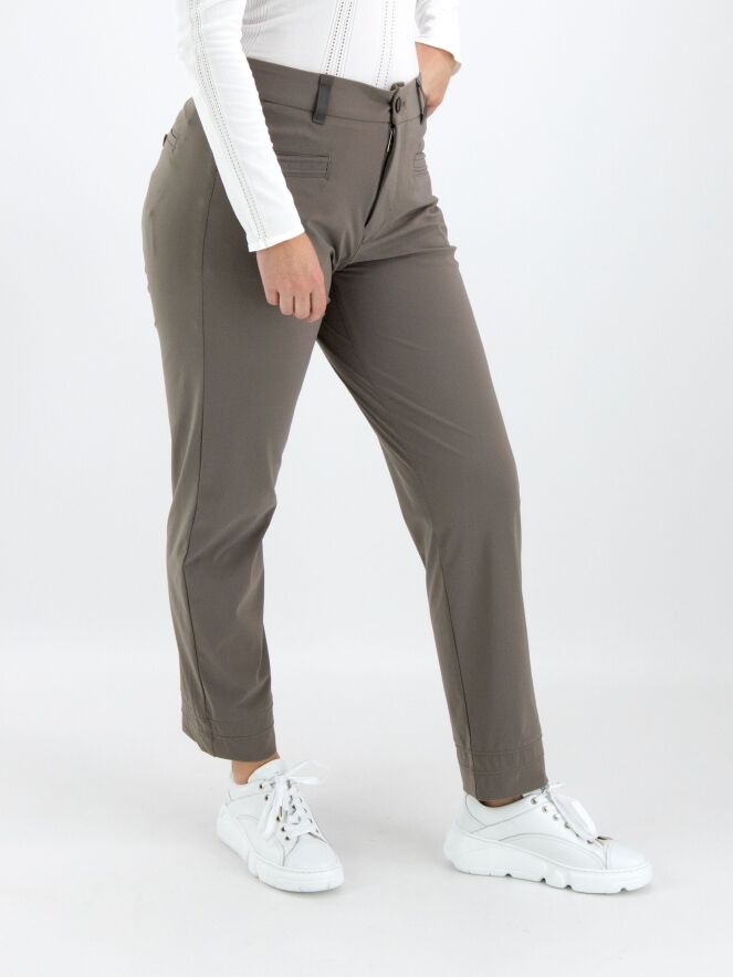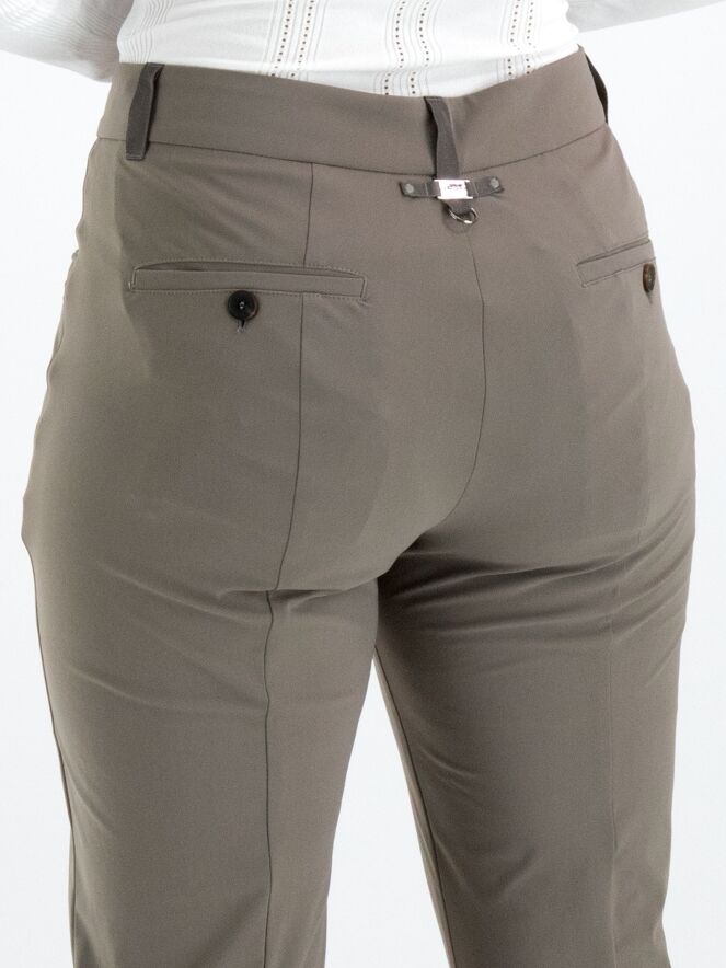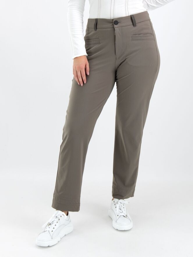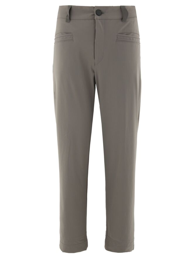 Eine Hose von High in grauer Farbe. Die Kanten der Taschen an der Vorderseite haben zwei tonale Reliefbiesen. Am unteren Ende gibt es zwei Doppelnähte. Diese Hose kann von Hand gewaschen werden.