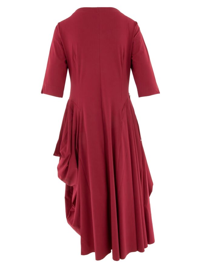 Kleid von High in der bekannten Reisequalität in einem satten Himbeerrot. Der Ausschnitt ist weit geschnitten und die formgebenden Nähte beginnen oberhalb der Brust. Ab der Taille sind sowohl vorne als auch hinten von den Seiten aus Falten eingearbeitet, die die Ballonform elegant betonen. Auf Taillenhöhe befinden sich Eingrifftaschen. Dieses Kleid kann bei 30 Grad gewaschen werden.