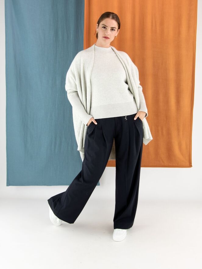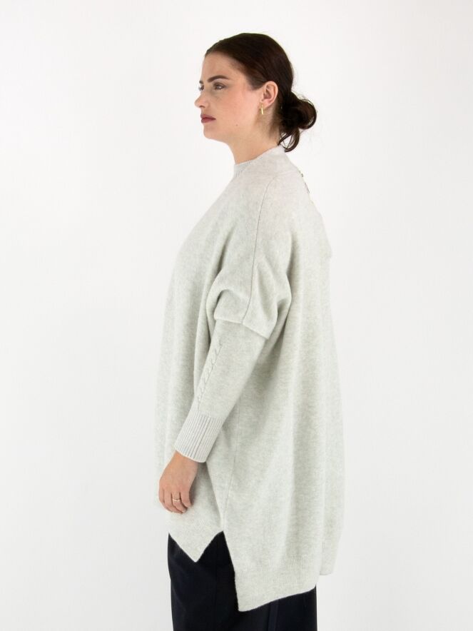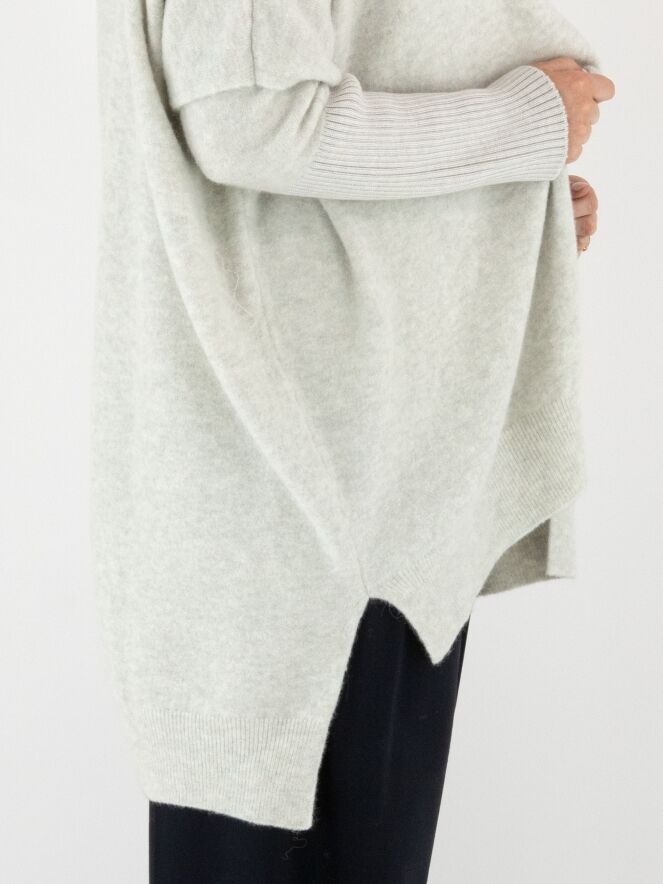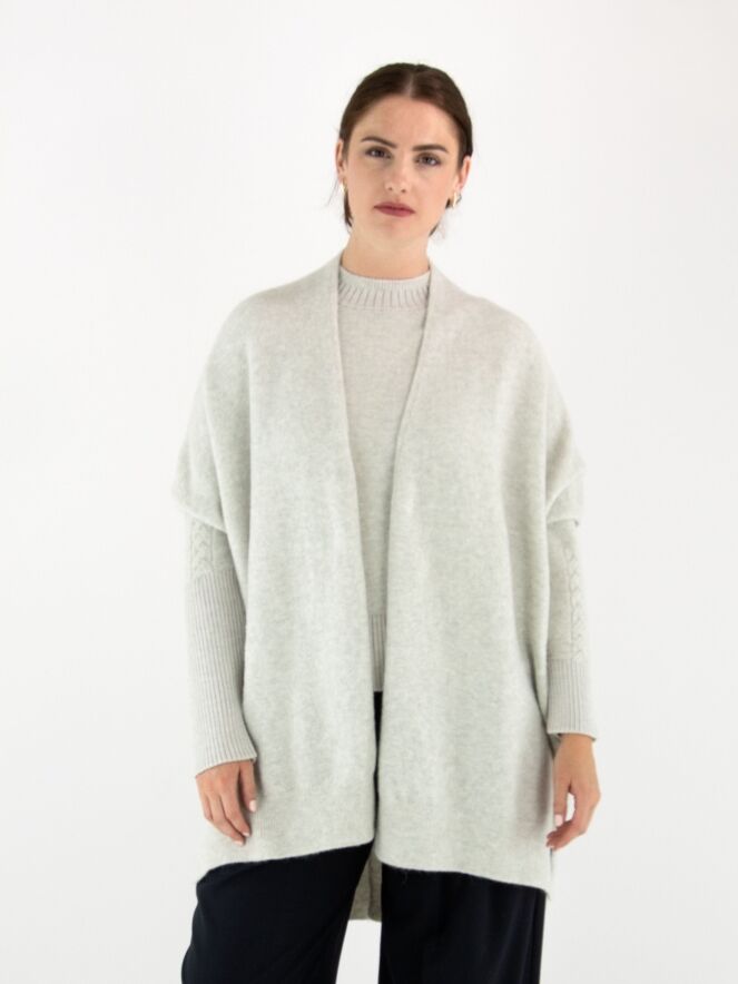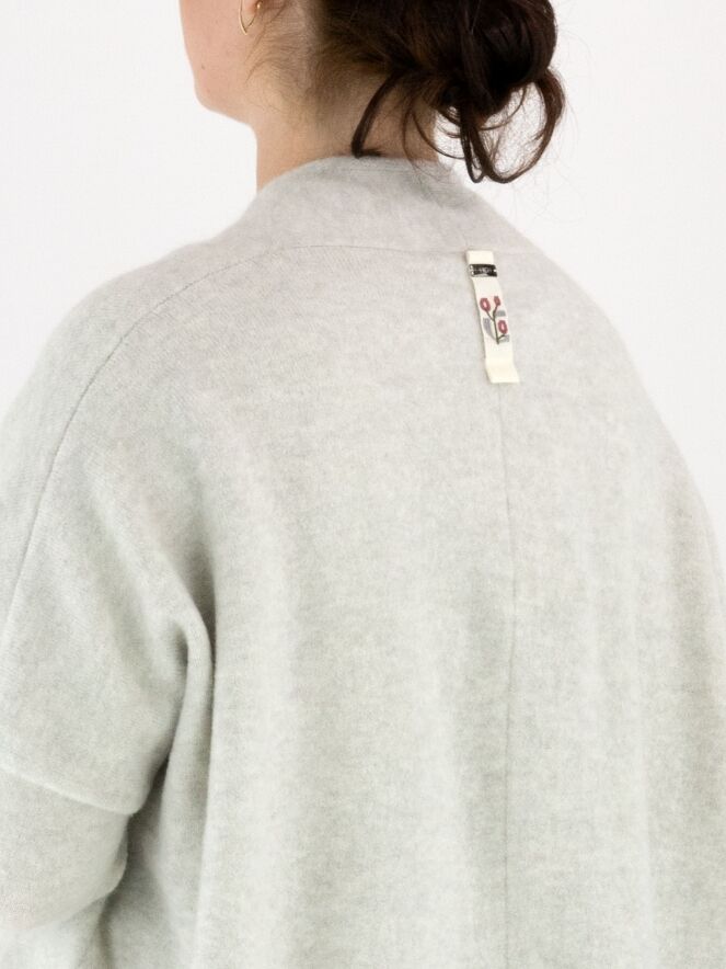 Luxuriöse ärmellose Weste von High in Hellgrau. Die Weste hat keinen Verschluss und sollte von Hand gewaschen werden.