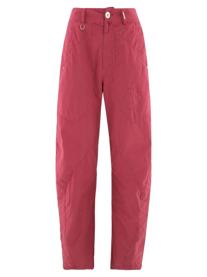 Hose von High aus sommerlicher Baumwolle in Himbeerrot. Mehrere diagonale Nähte verleihen dem Design eine dynamische und moderne Ausstrahlung. Mit Eingrifftaschen versehen, kann diese exklusive Designerhose bei 30 Grad gewaschen werden.