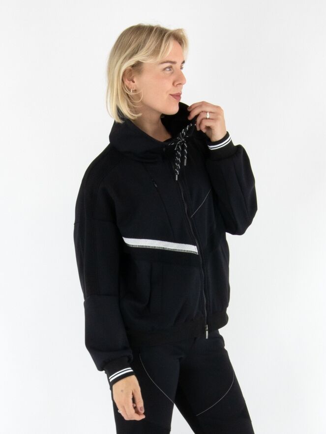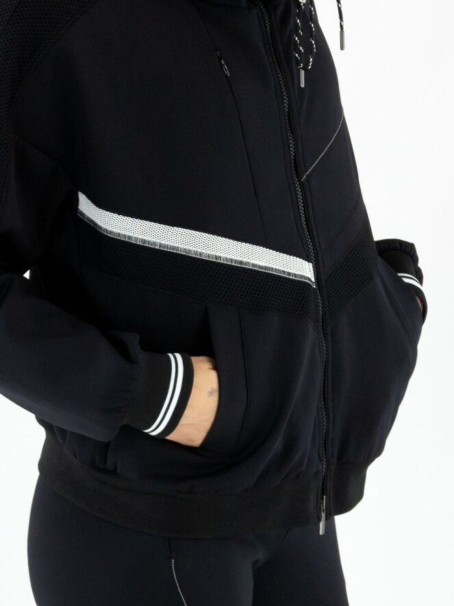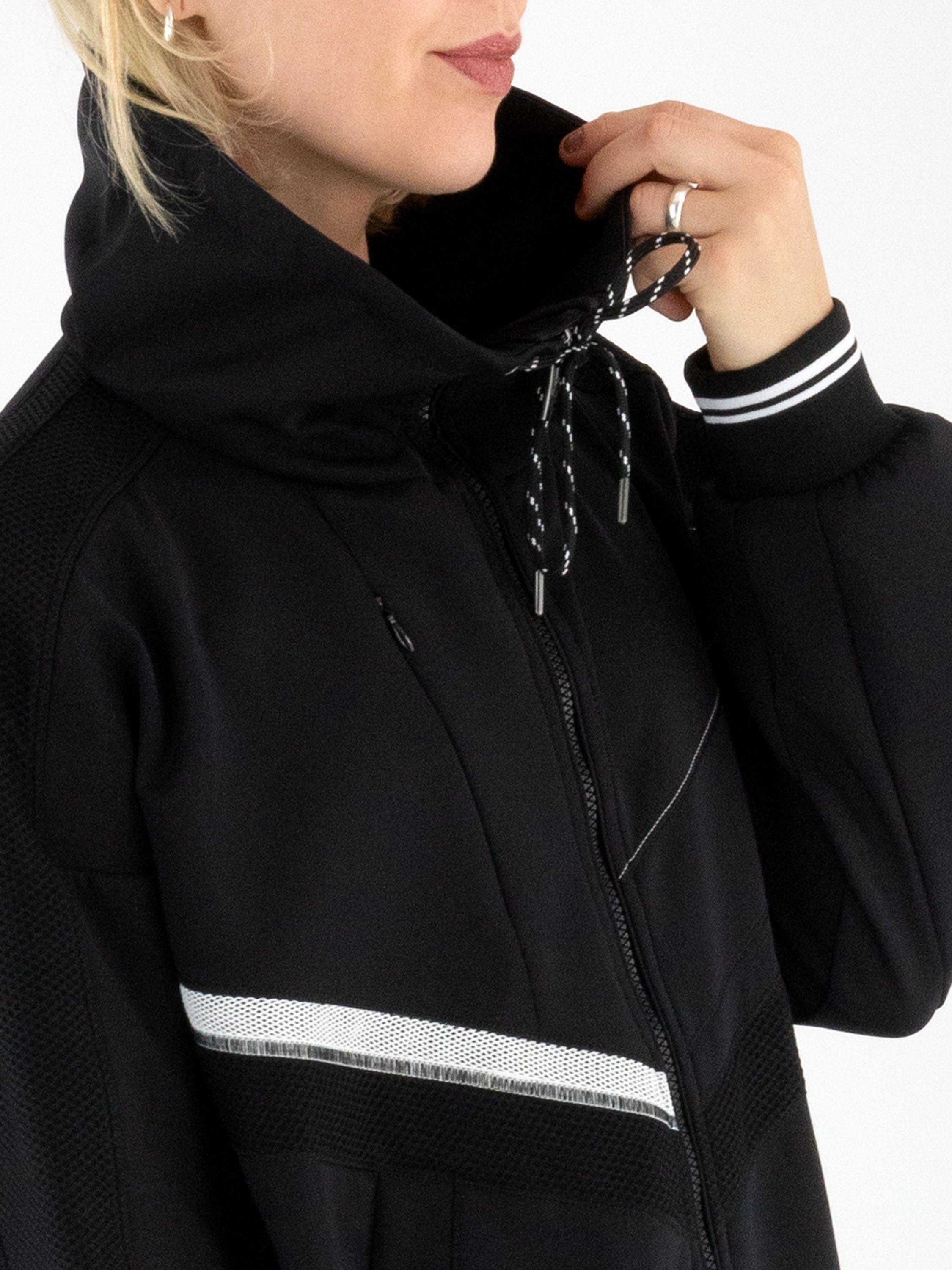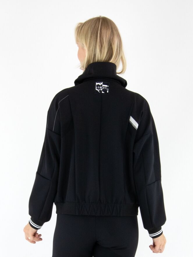 Gesteppte Weste von High in Schwarz. Ein Kordelzug am Kragen ermöglicht einen raffinierten Falteneffekt. Auf der Vorderseite sorgen diagonale Netzeinsätze und eine weiße Ziernaht für eine moderne, sportive Ausstrahlung. Die langen Ärmel enden in feingerippten Strickbündchen, während praktische Eingrifftaschen das Design abrunden. Diese exklusive Designerweste sollte per Hand gewaschen werden.