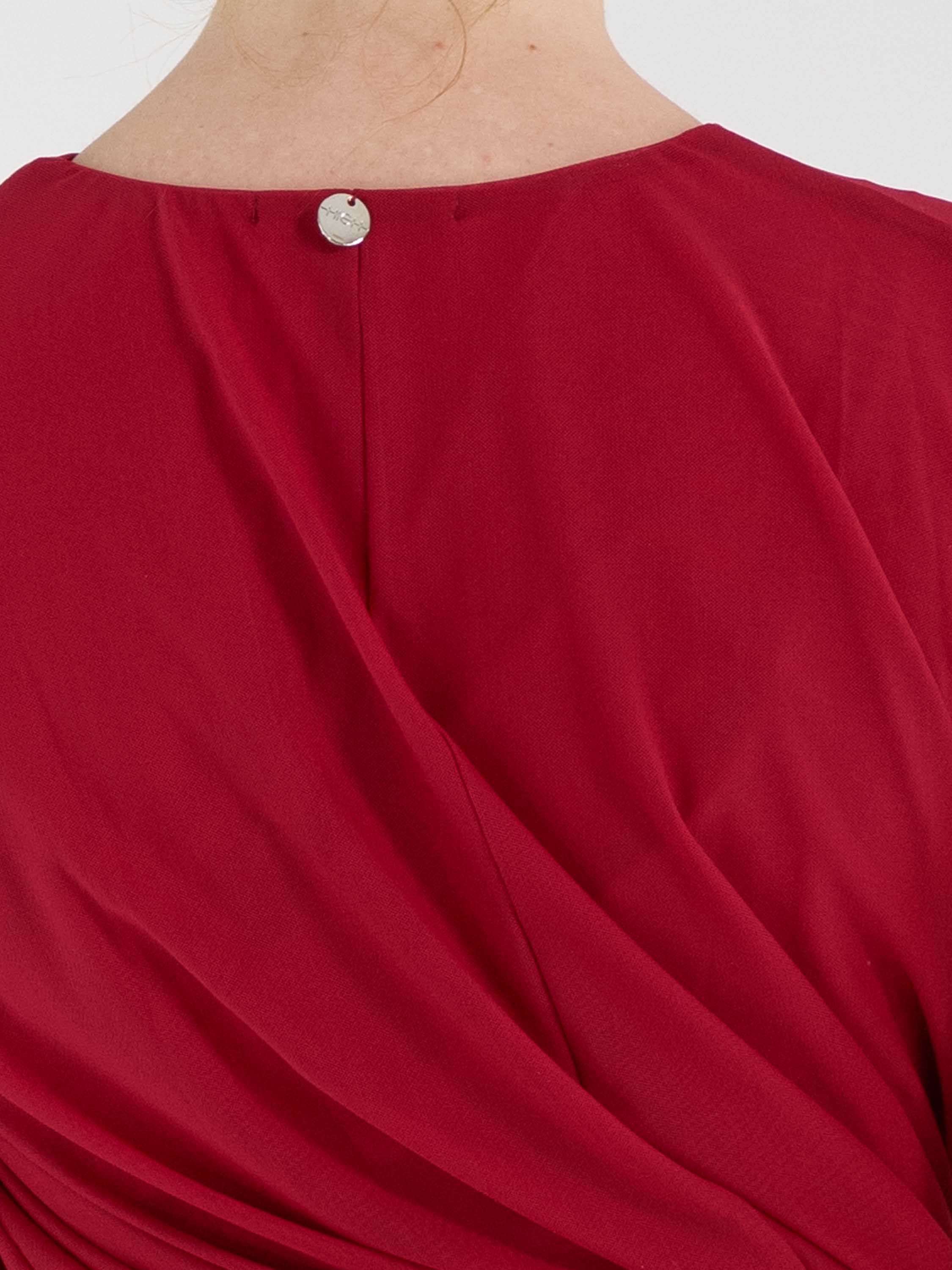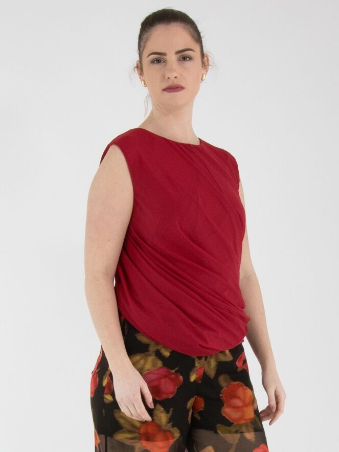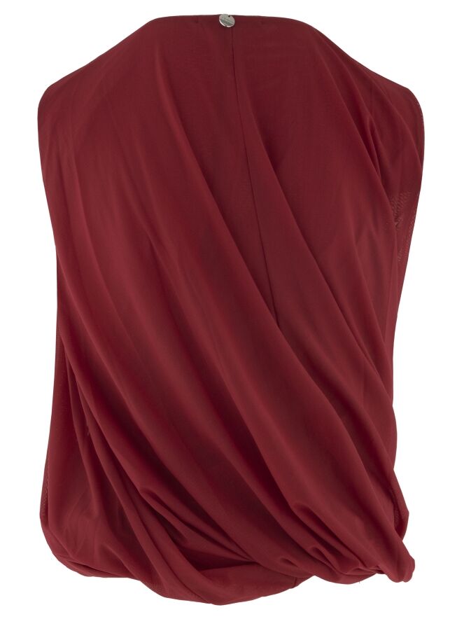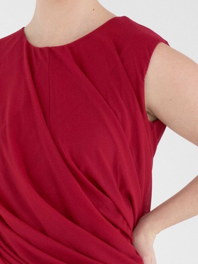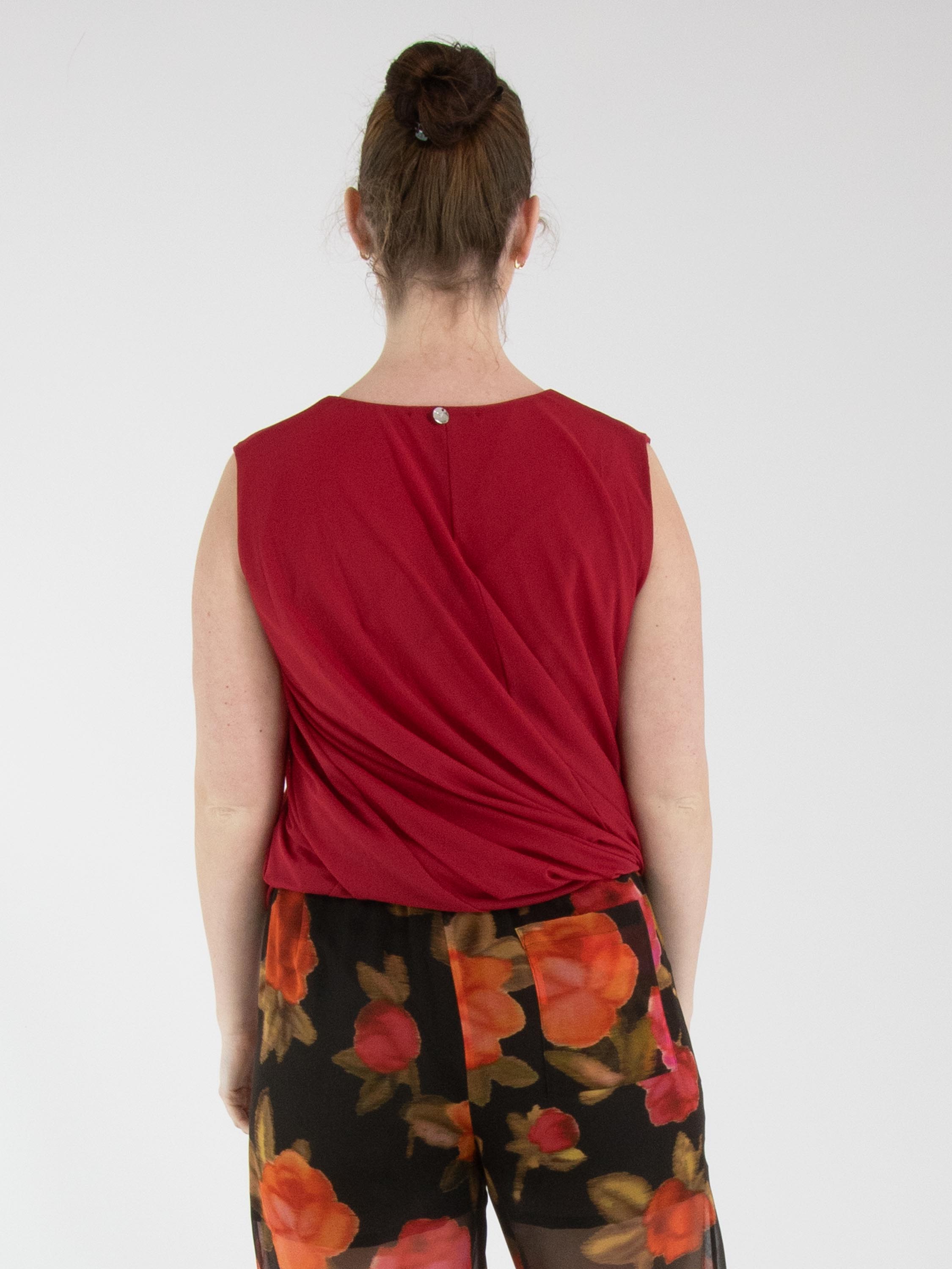 Ein Top von High in Himbeerrot. Der Top ist aus doppellagigem Stoff gefertigt, der innen gedreht ist und so einen einzigartigen Drapierungseffekt erzeugt. Der Top hat einen Rundhalsausschnitt und kann von Hand gewaschen werden.
