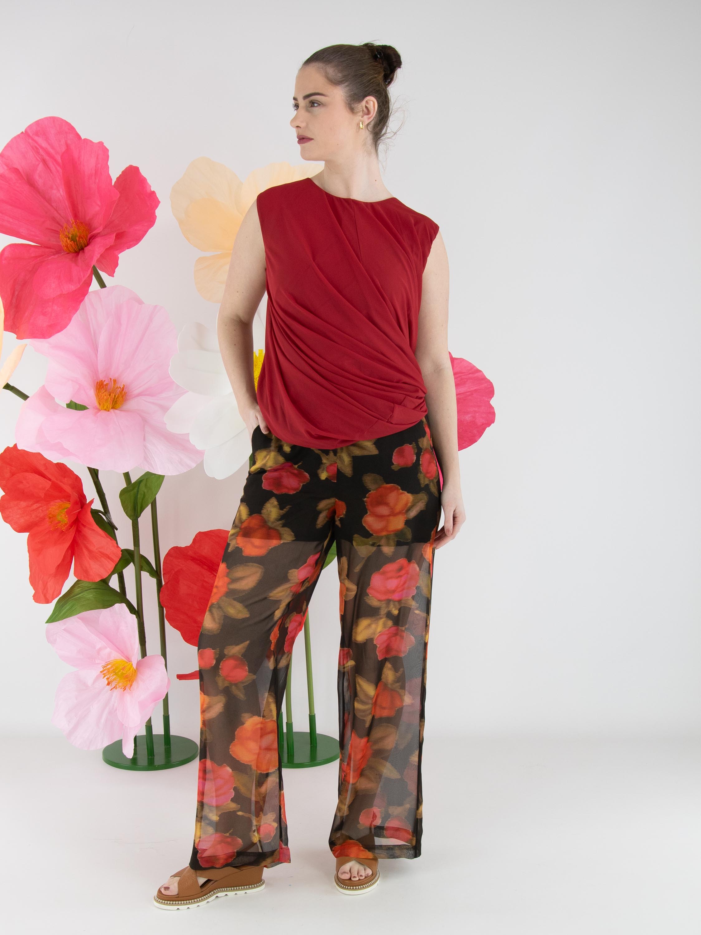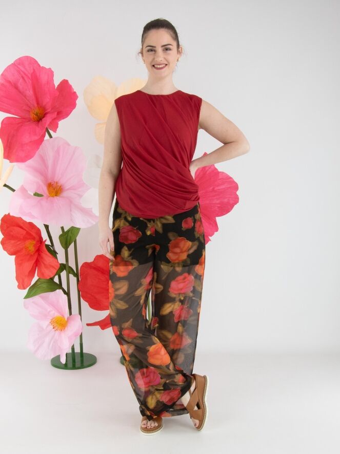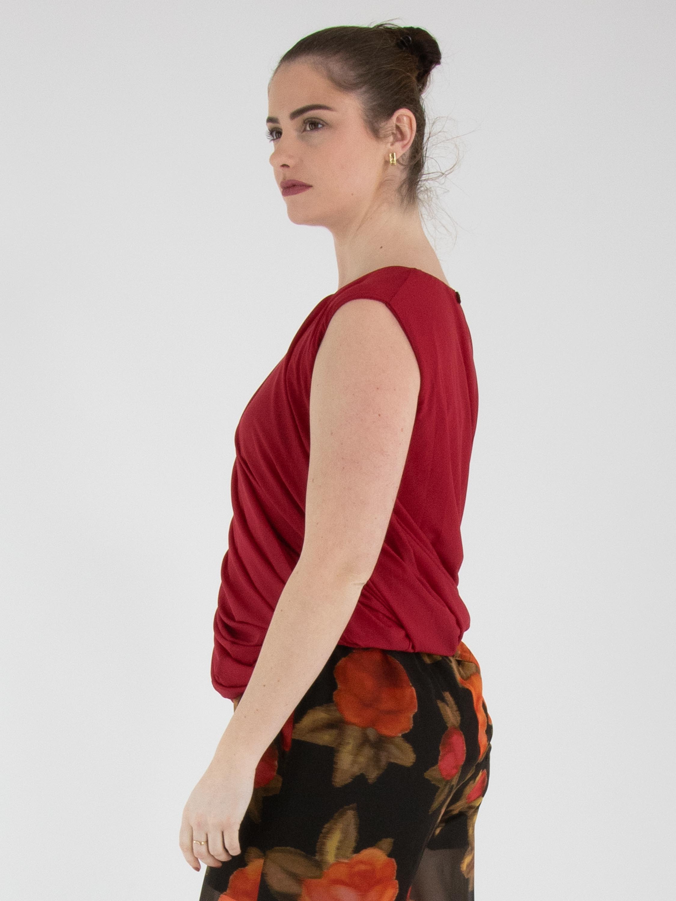 Ein Top von High in Himbeerrot. Der Top ist aus doppellagigem Stoff gefertigt, der innen gedreht ist und so einen einzigartigen Drapierungseffekt erzeugt. Der Top hat einen Rundhalsausschnitt und kann von Hand gewaschen werden.
