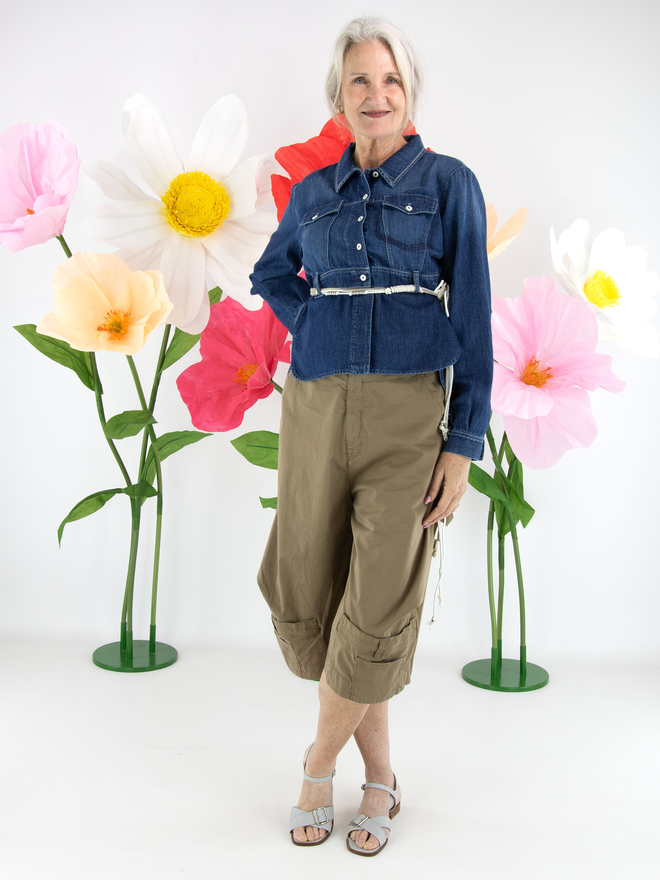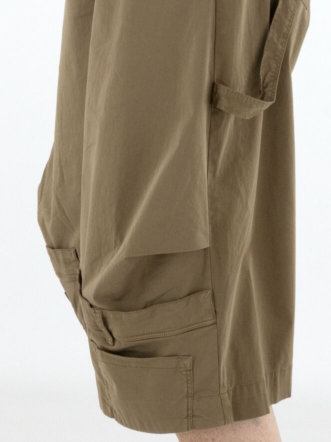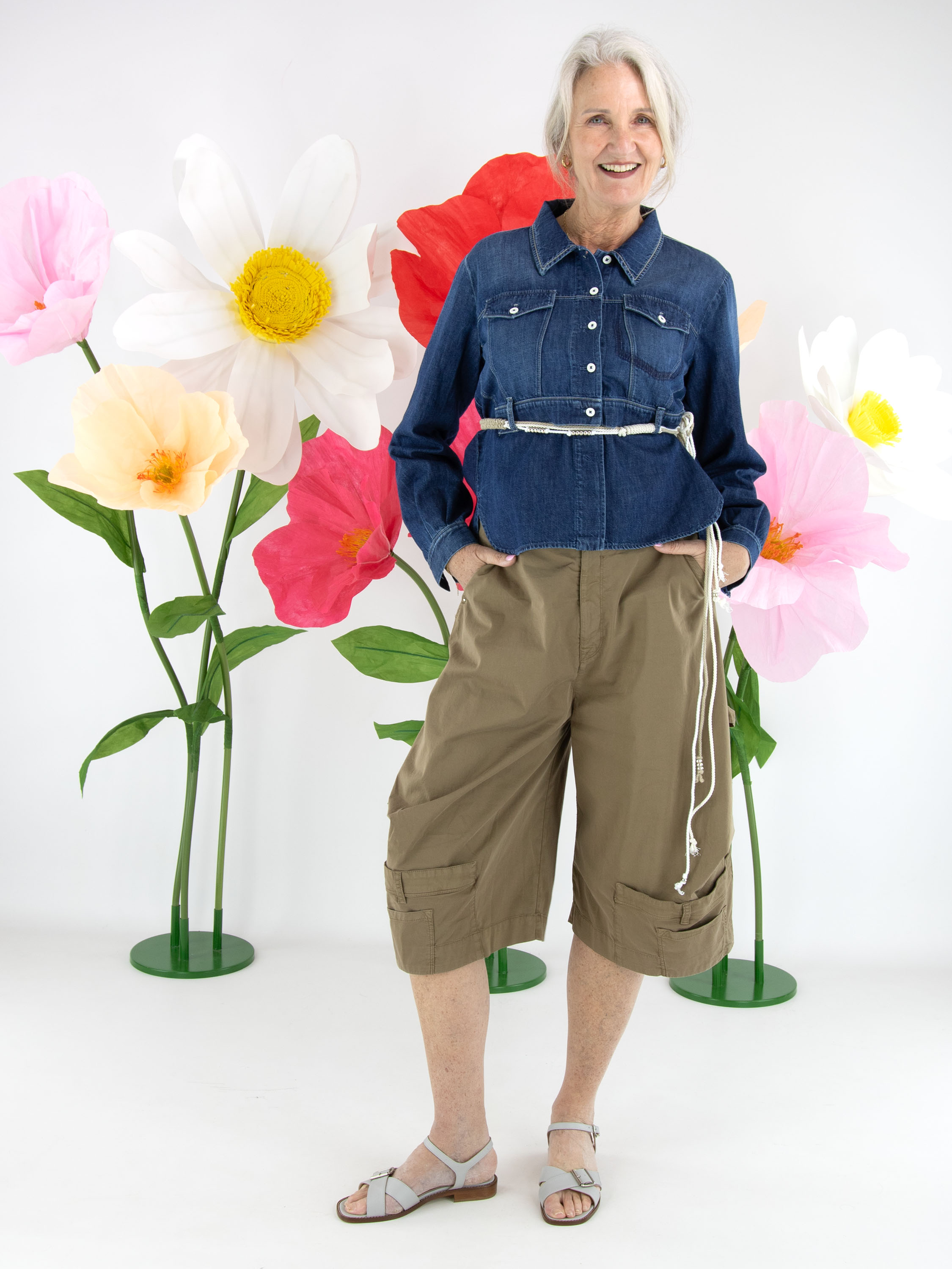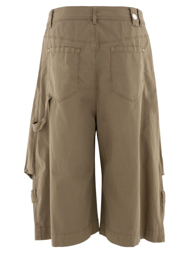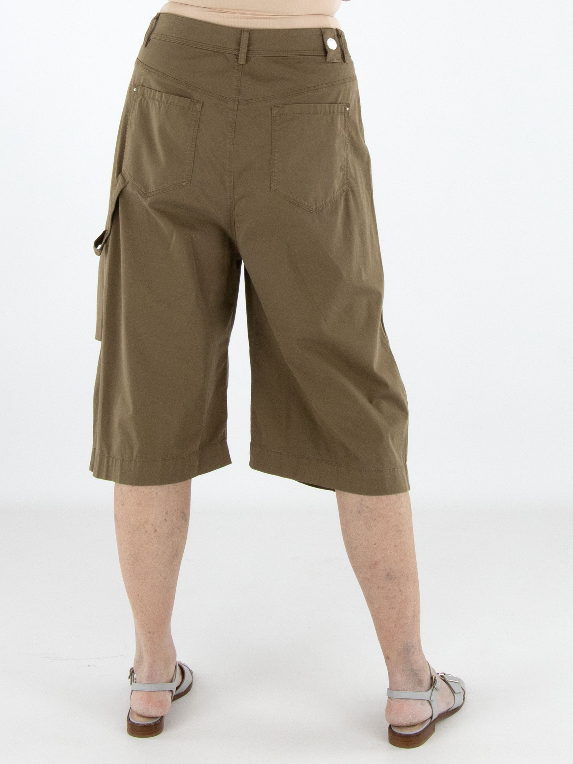 Caprihose von High in einem warmen Braunton. Am unteren Teil der Hosenbeine befindet sich ein besonderes Designdetail, das den Eindruck einer umgekehrten Hose mit Taschen vermittelt. Dieses raffinierte Element verleiht dem Modell eine moderne und überraschende Ausstrahlung. Diese Hose kann bei 30 Grad gewaschen werden.